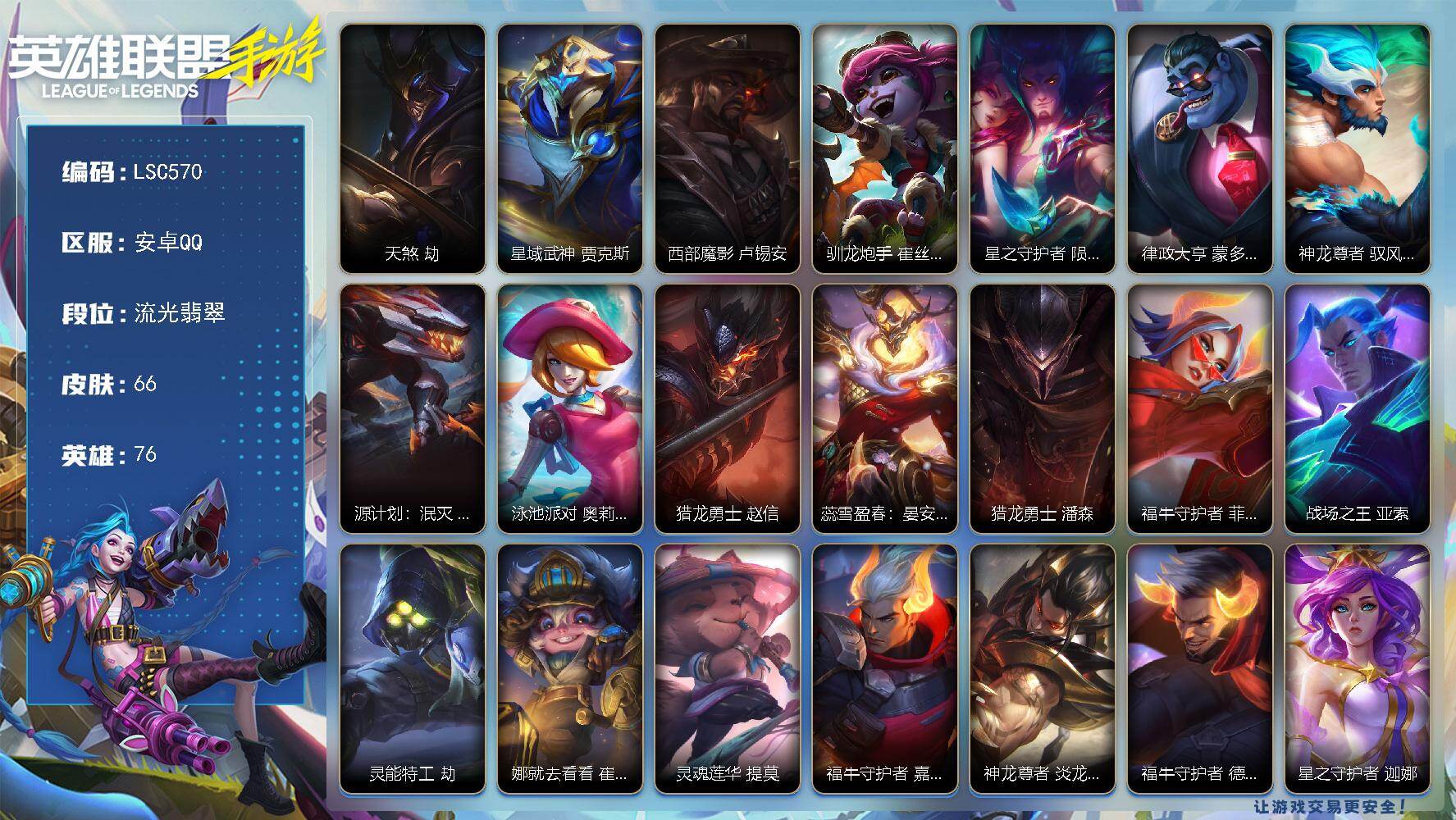 76英雄/66皮肤/8传说/19史诗/流光翡翠/