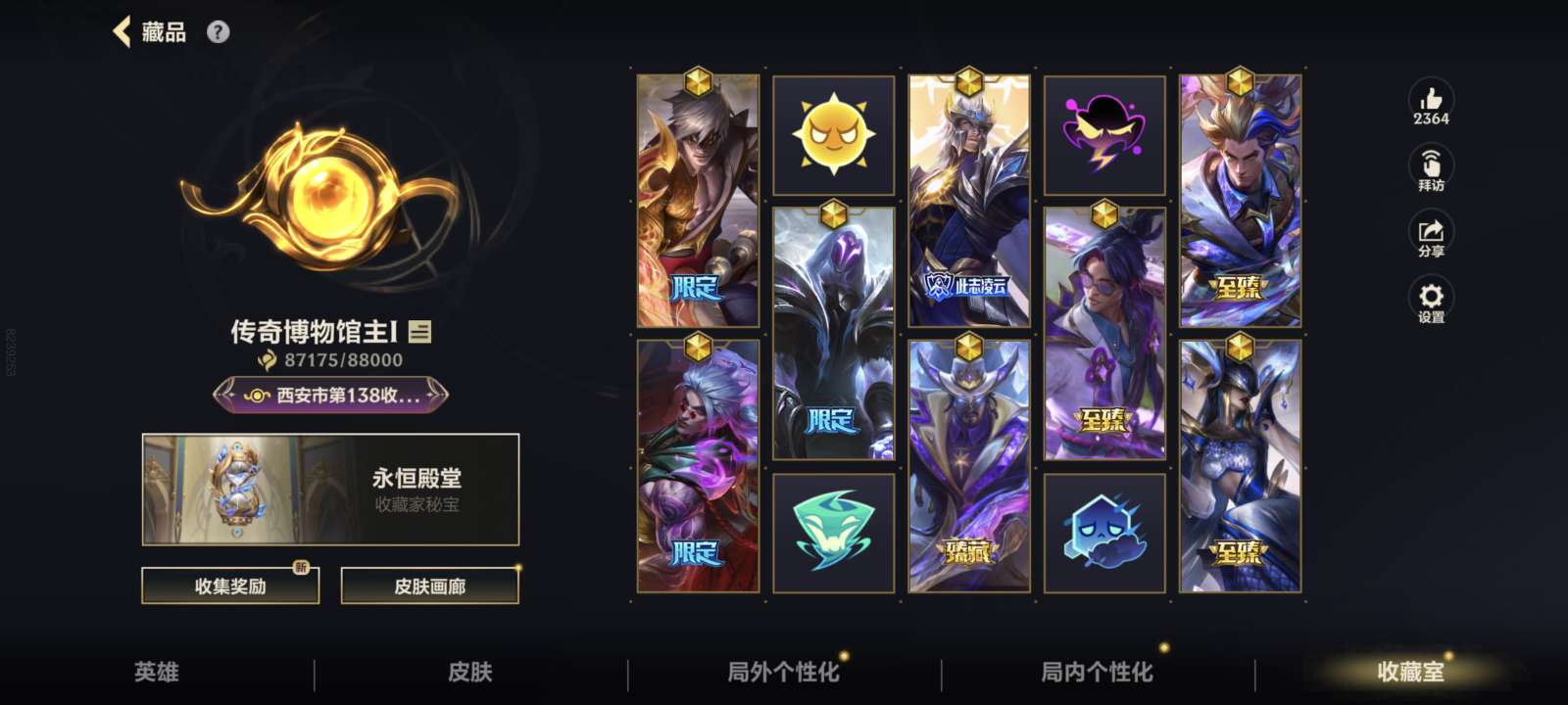 126英雄/134皮肤/1神话/15传说/48史诗