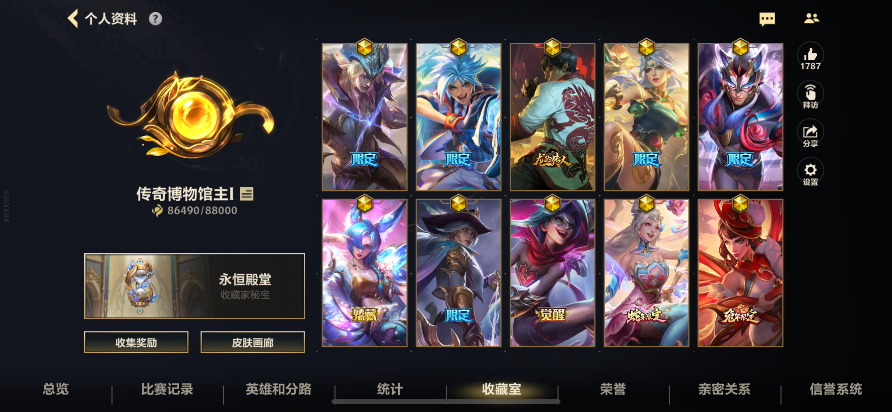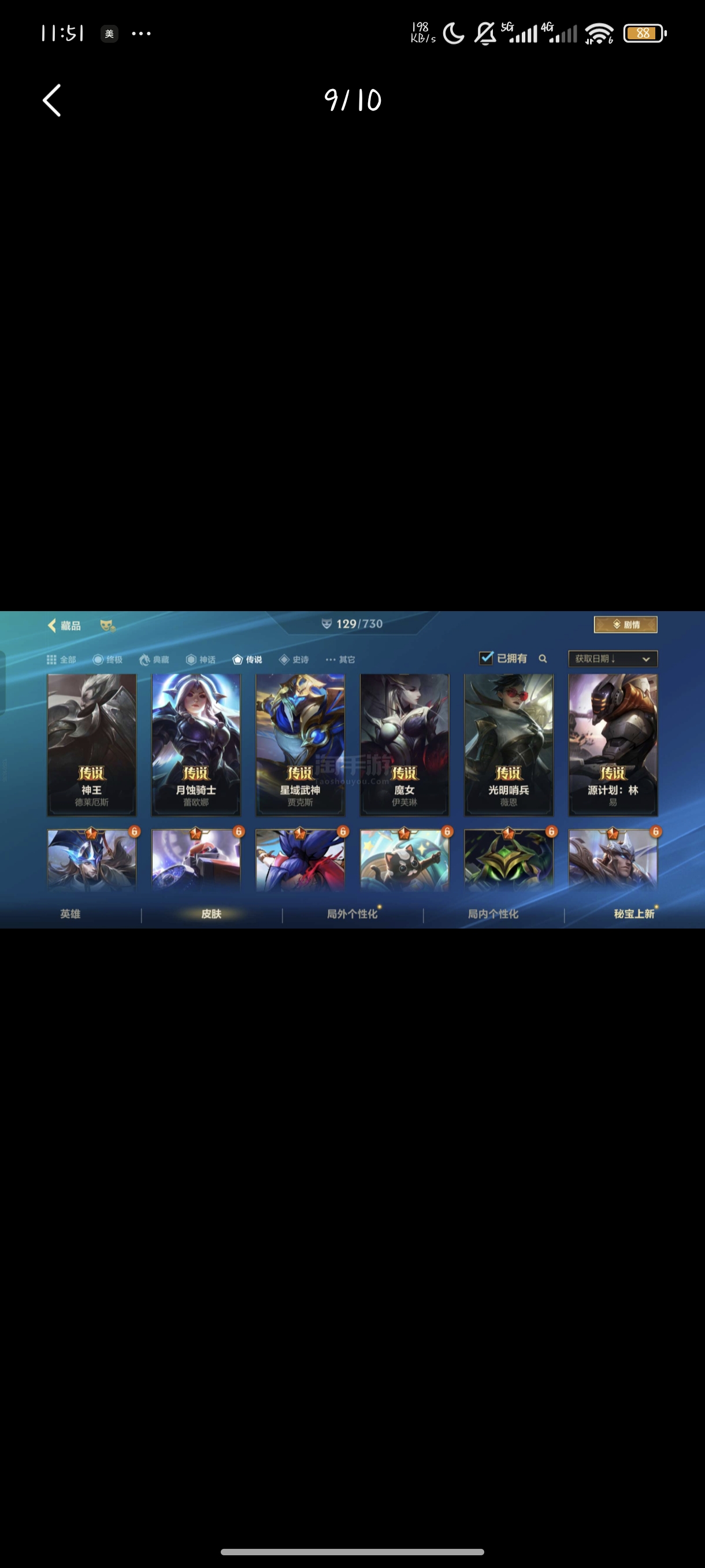 有二次!7.2w收藏!437皮肤6神话48传说256史诗!2紫色纹章!
