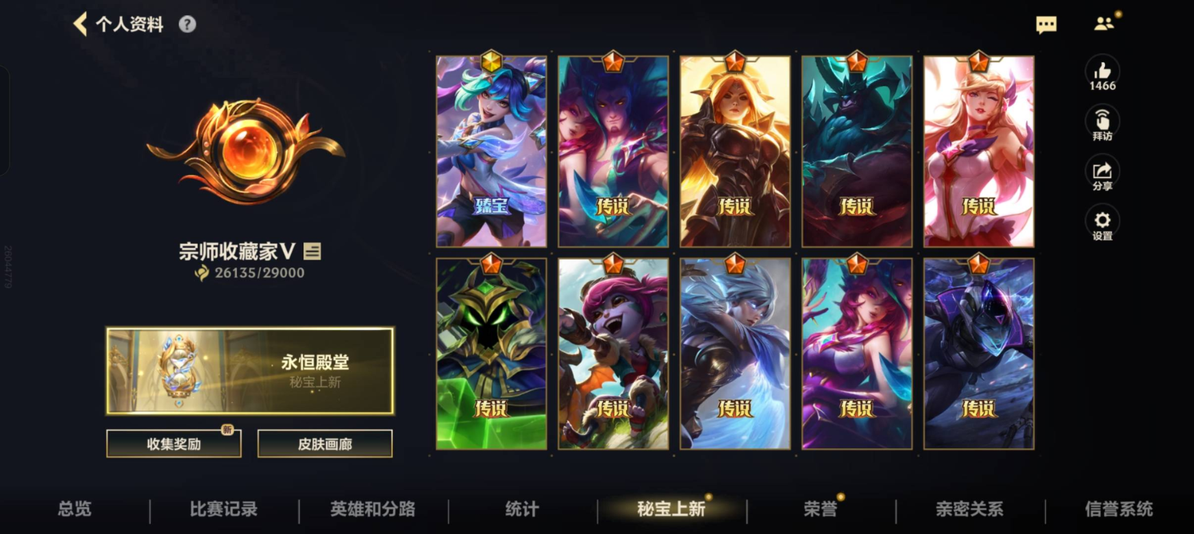 有二次!6.8w收藏!425皮肤6神话48传说236史诗