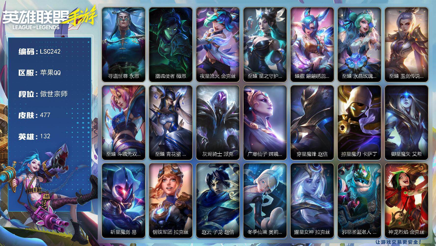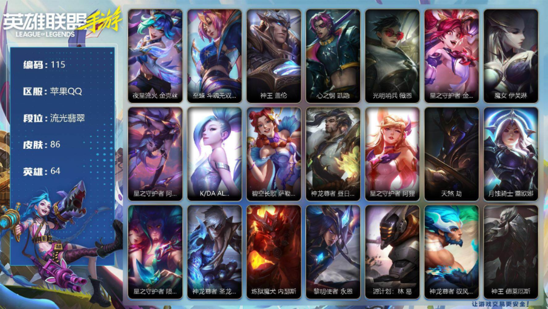 2神话17传说60史诗132皮,只有手机绑定买了放心,不影响二次转让