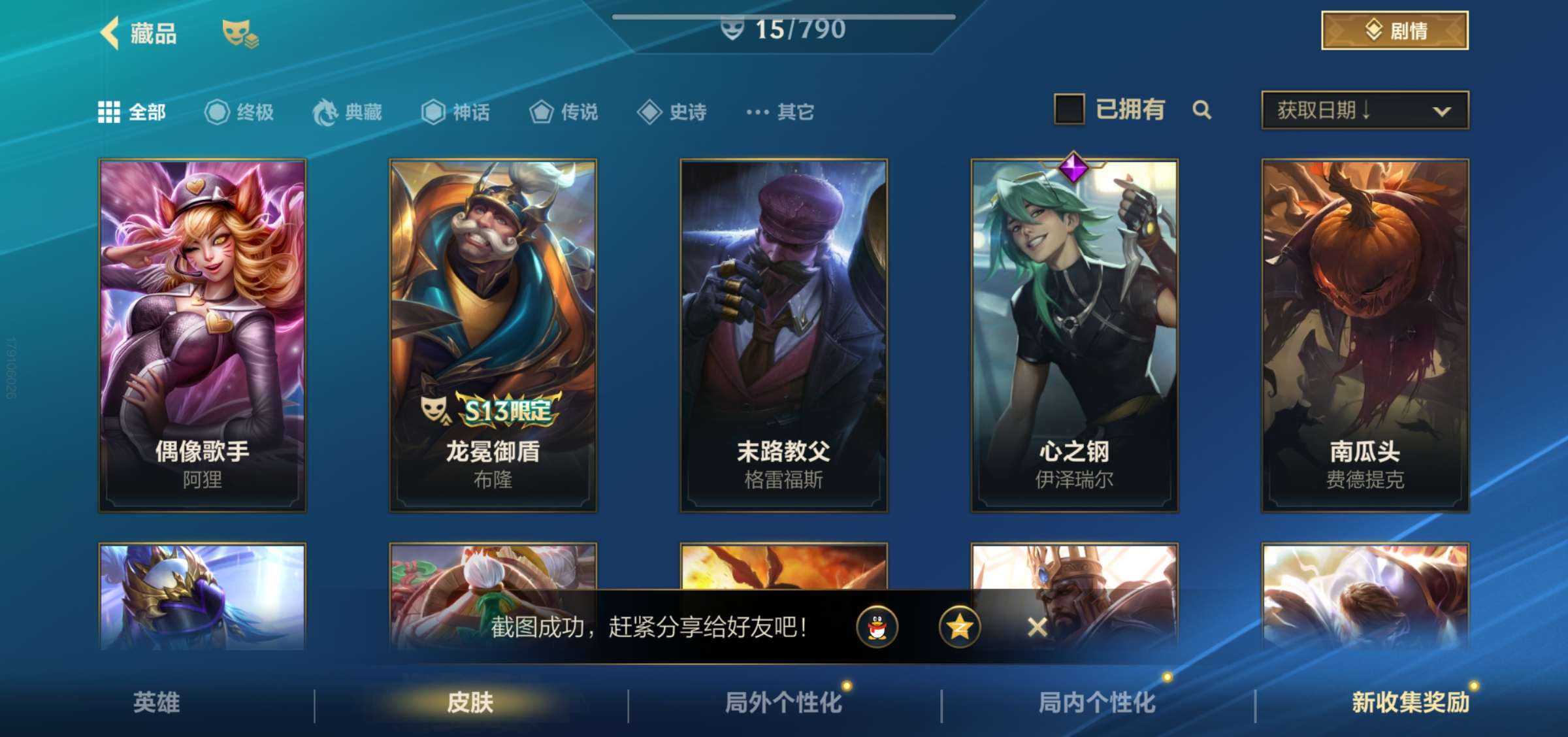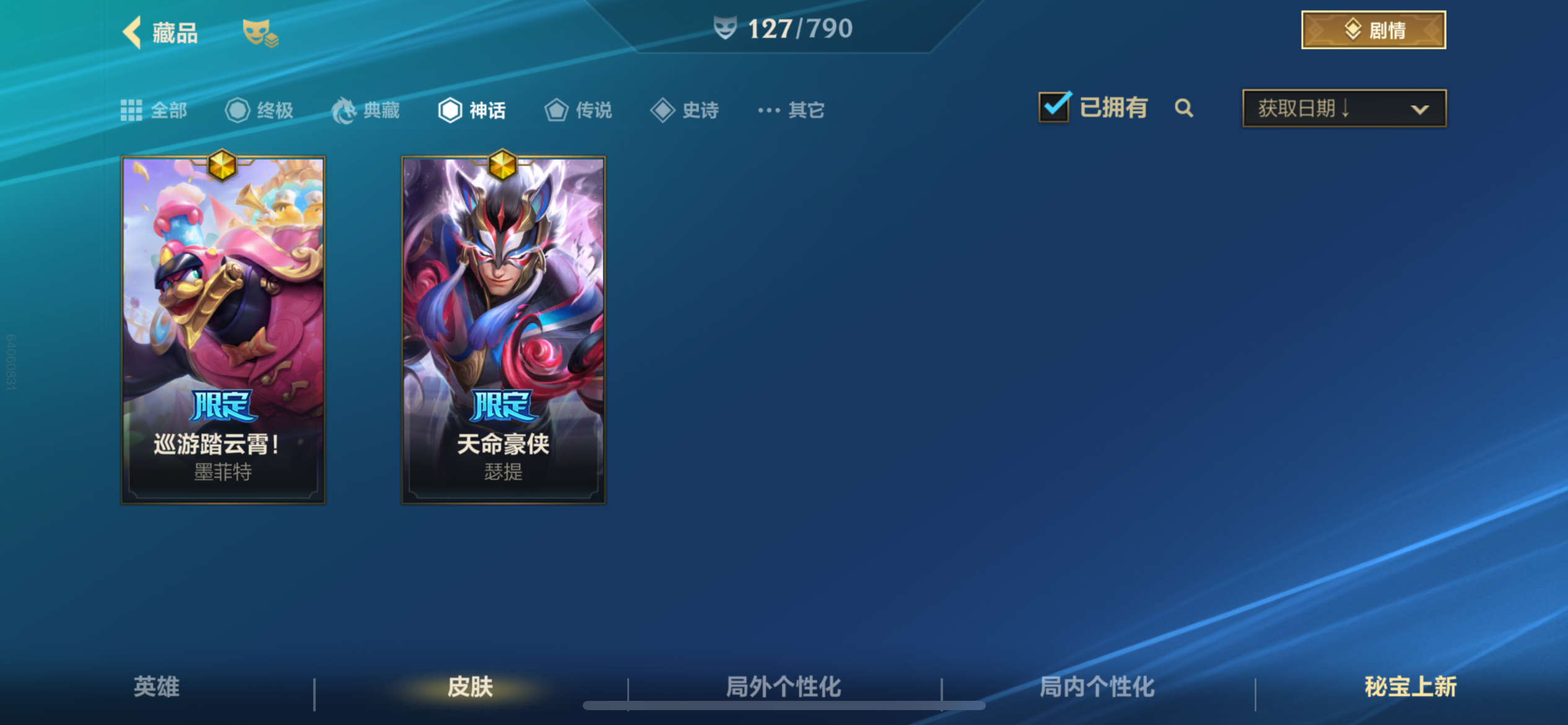 70英雄/78皮肤/12传说/25史诗/荣耀黄金/