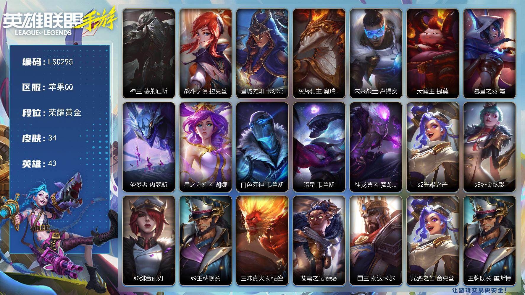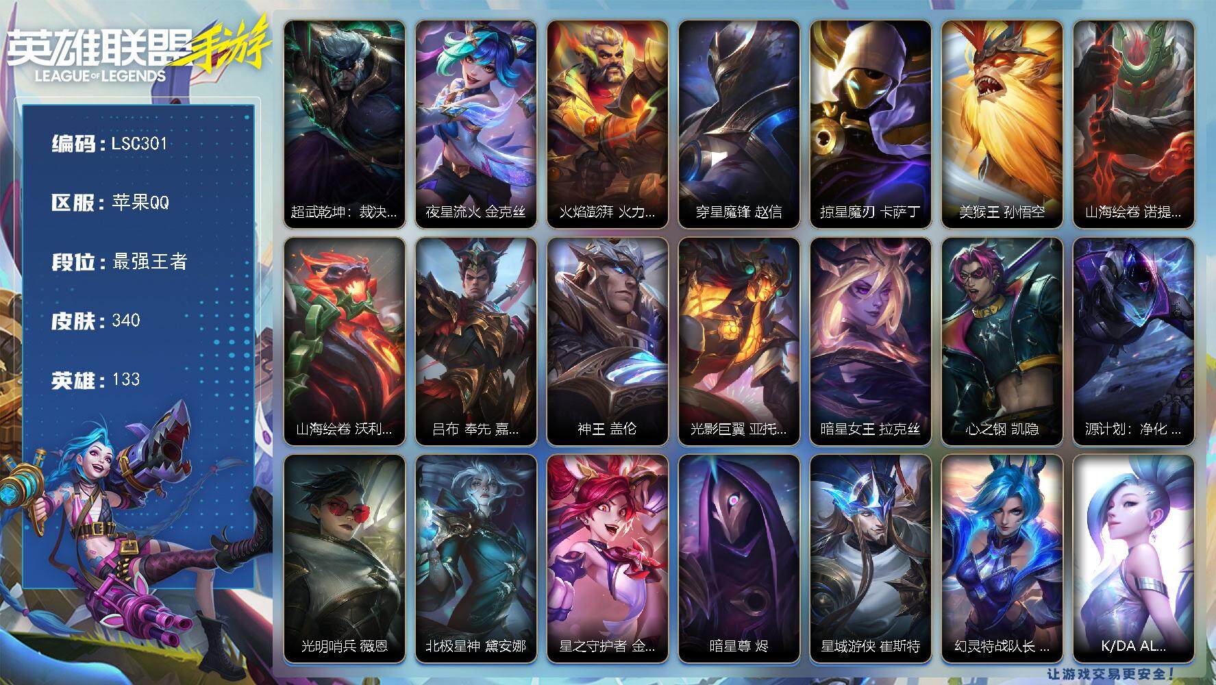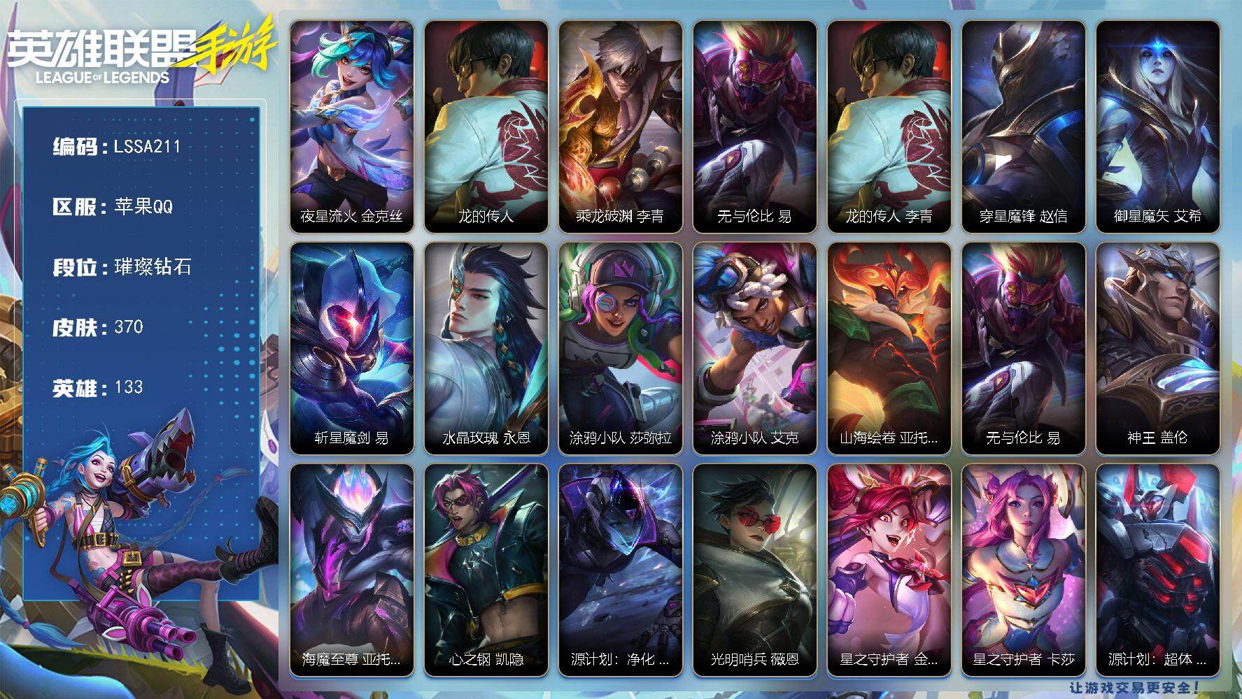 117英雄/95皮肤/华贵铂金/夜星流火 金克丝/