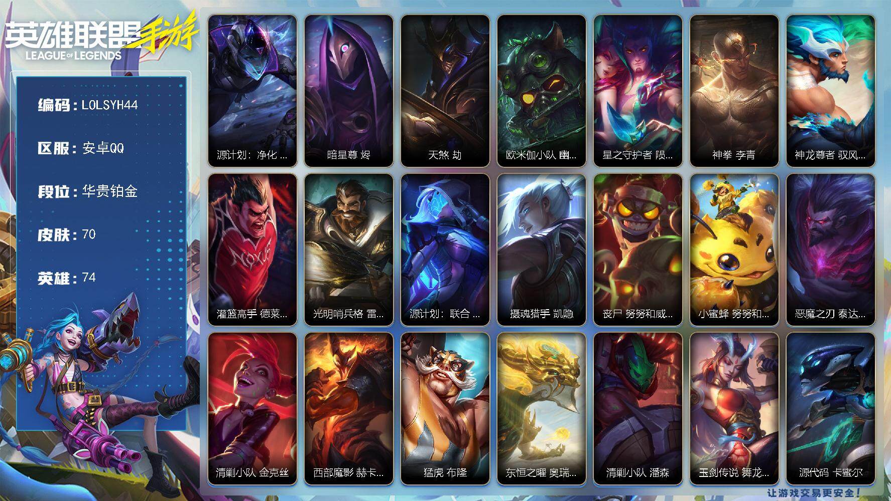 74英雄/70皮肤/华贵铂金/