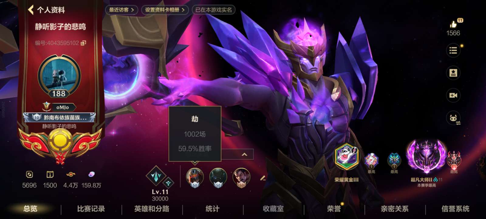千场劫60.2%胜率 700场派克55.5%胜率,劫派克亚索全皮