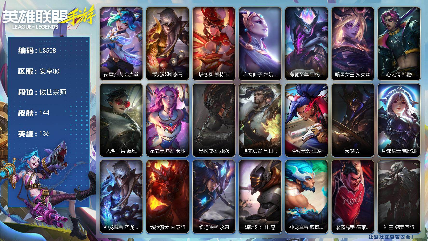 79英雄/62皮肤/璀璨钻石/夜星流火 金克丝/