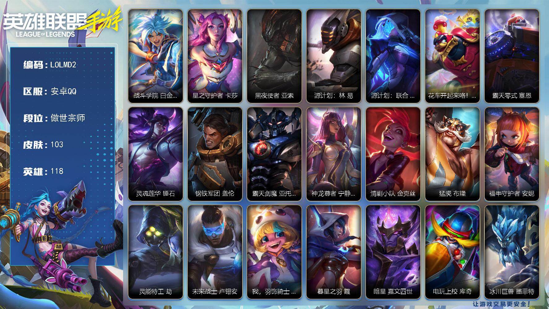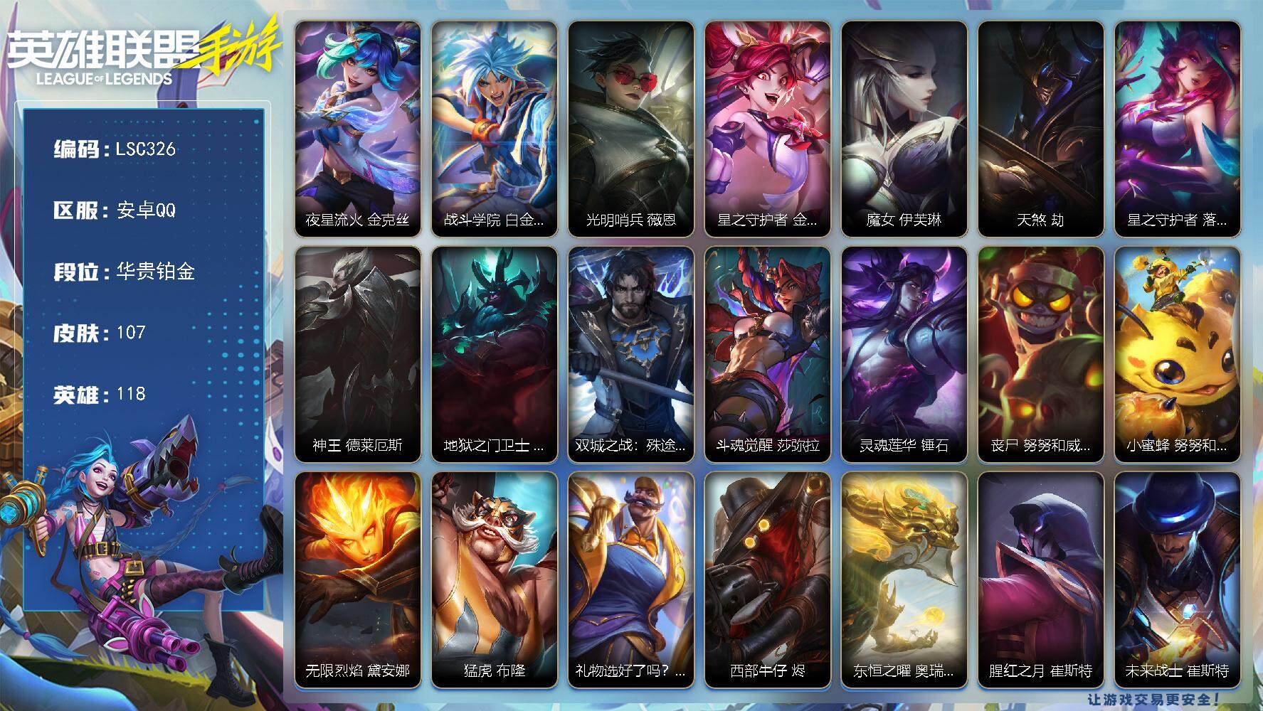 118英雄/107皮肤/华贵铂金/夜星流火 金克丝/