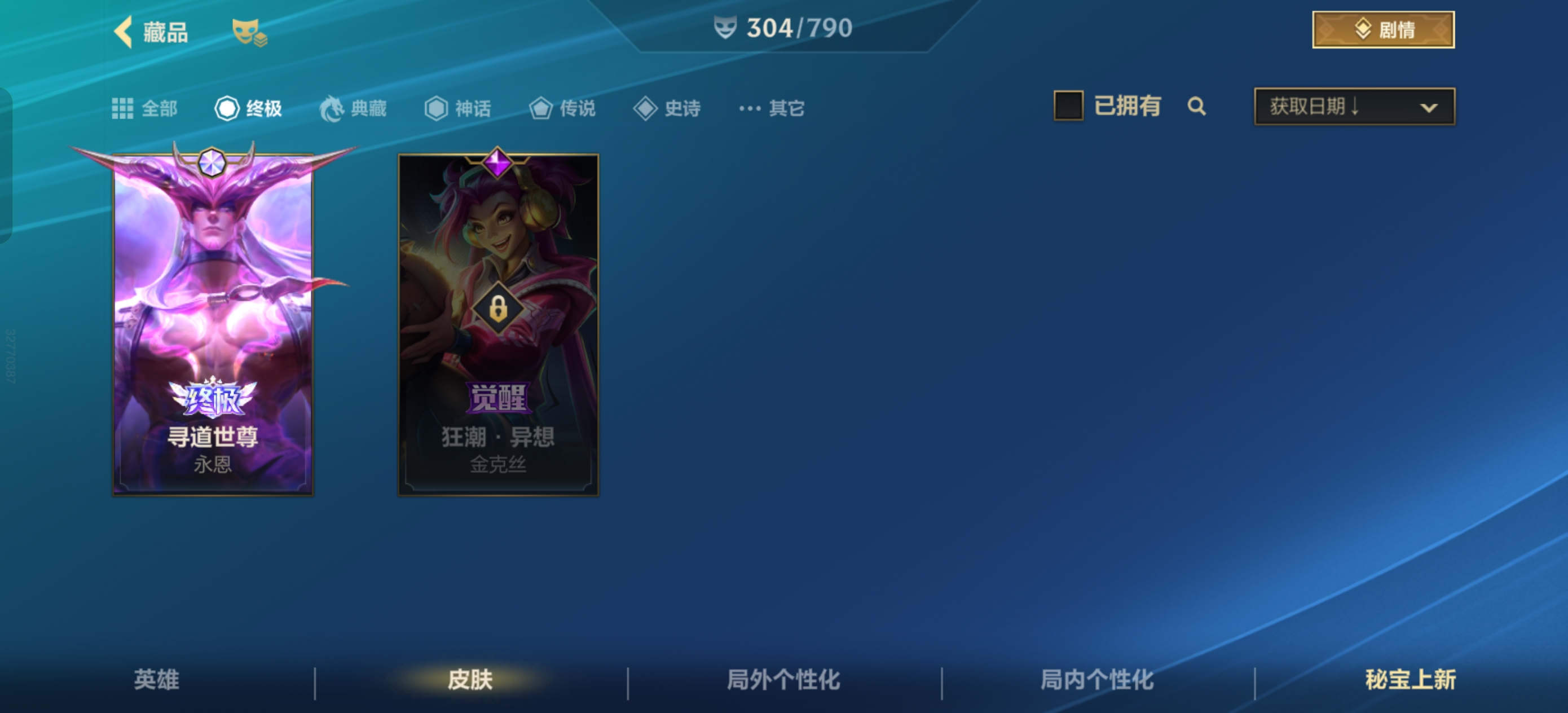 132英雄/280皮肤/2神话/28传说/138史诗/流光翡翠/