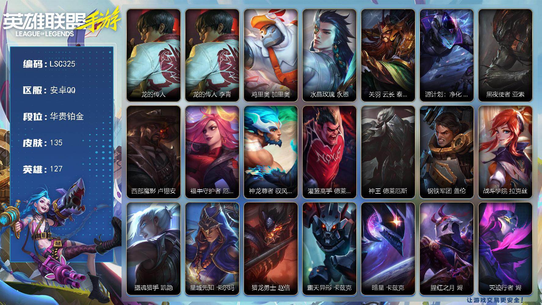 127英雄/135皮肤/华贵铂金/龙的传人 李青