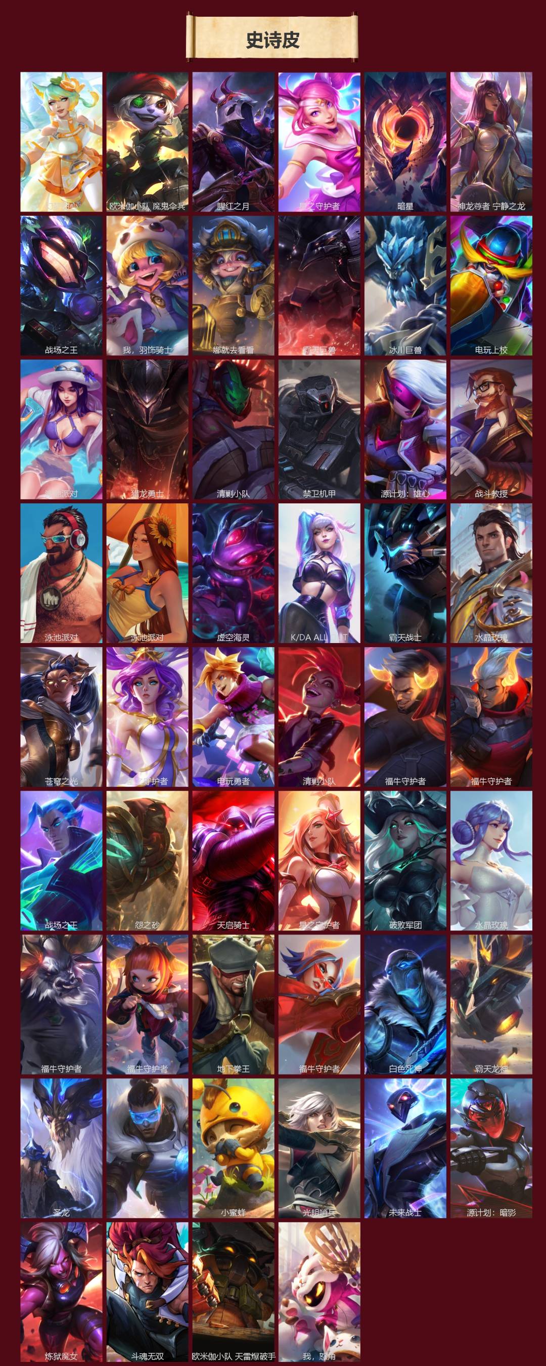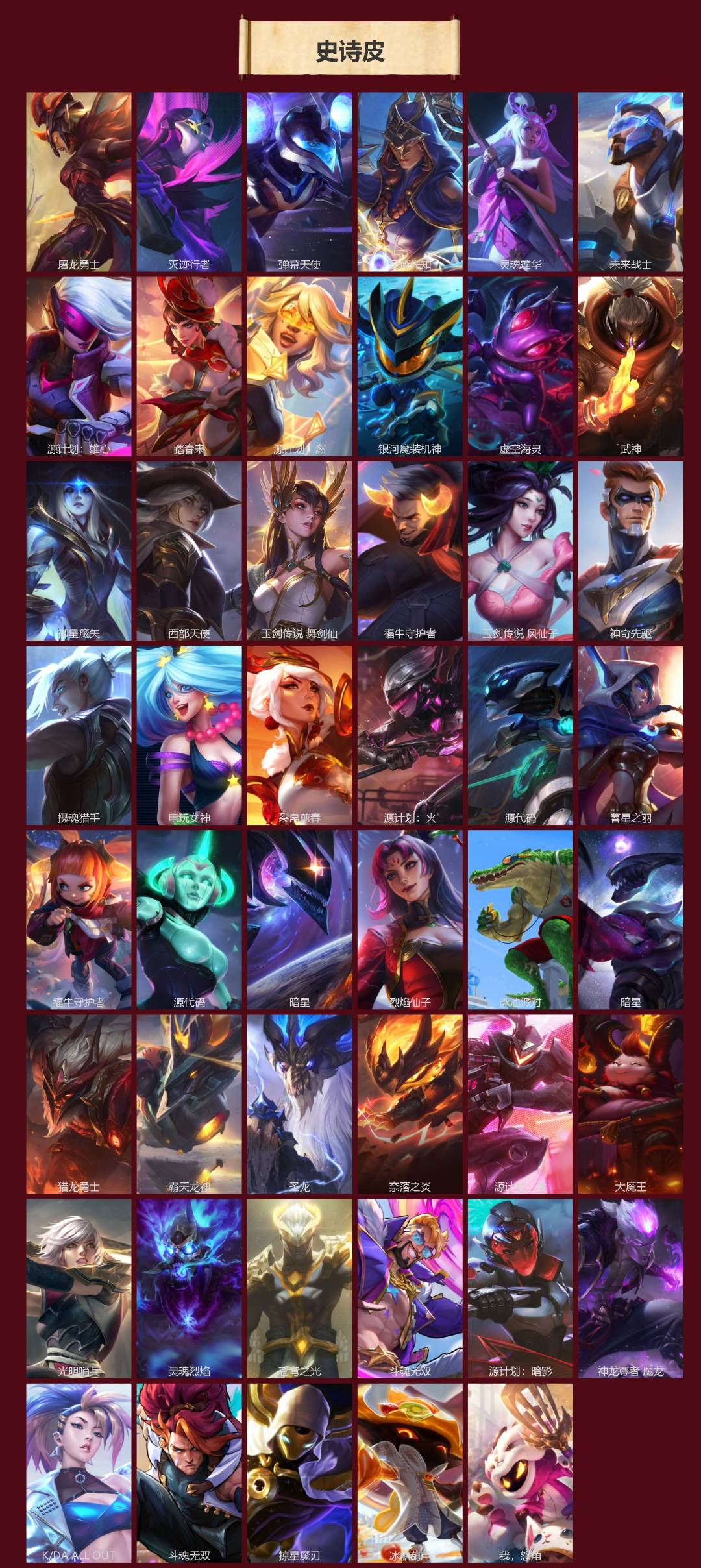 3神话 1限定 22传说 96史诗 230皮肤 可二次