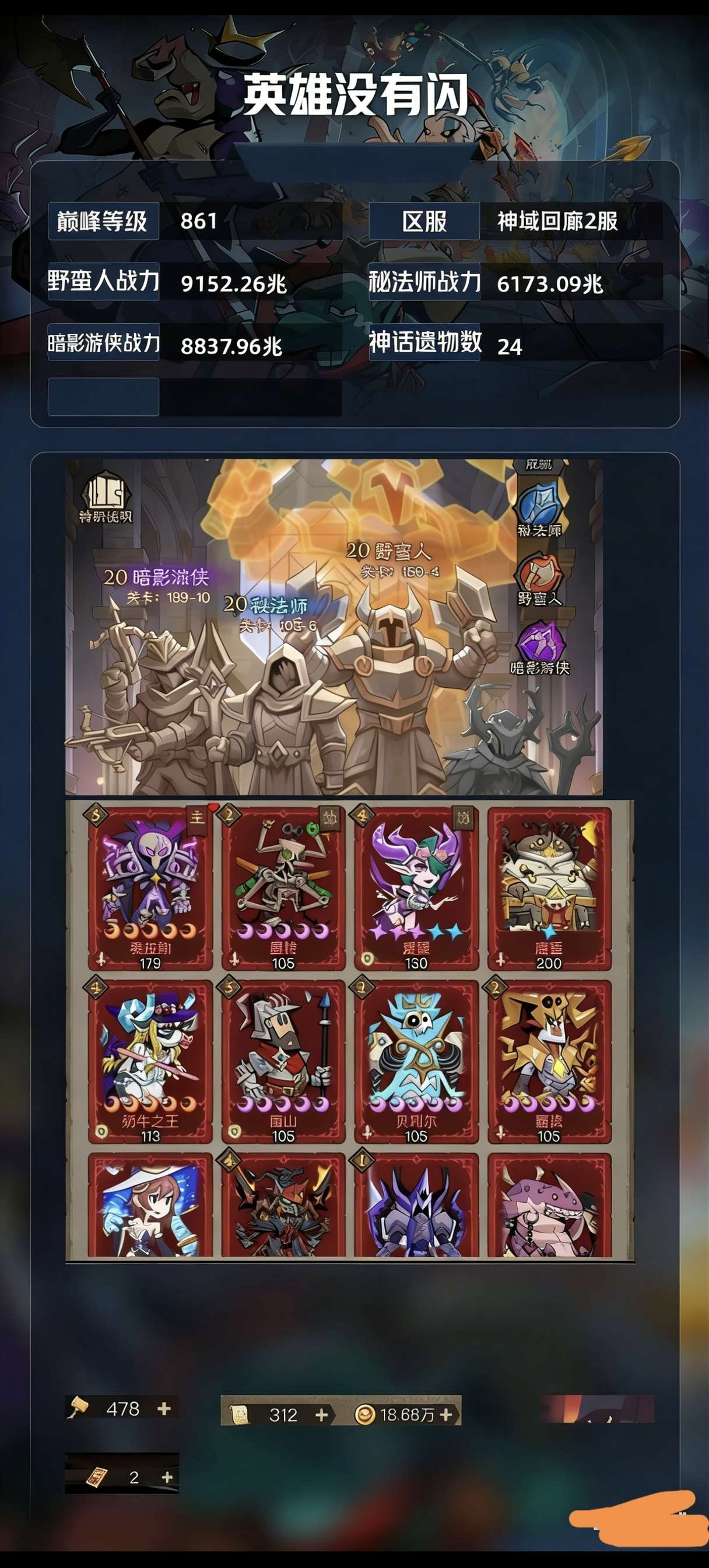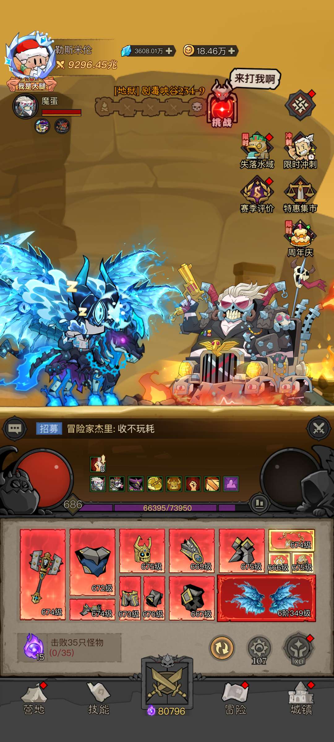 五星奥丁,两星堕天之翼,戏谑之眼翅膀,68星魔蛋,42红遗物,3战士永恒,星辉武器冰锤,贪婪稳10