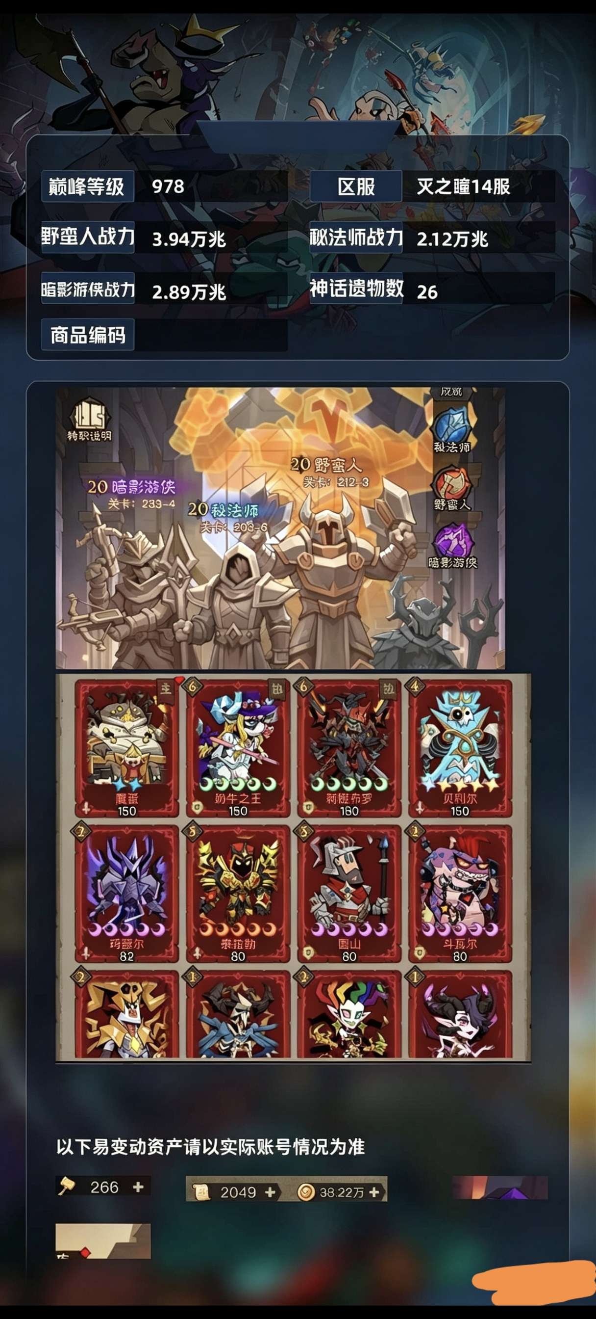 新服自己看,9300兆,法跟暗影7300兆,全套时装,红遗33个,自己看。