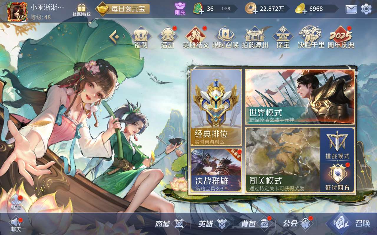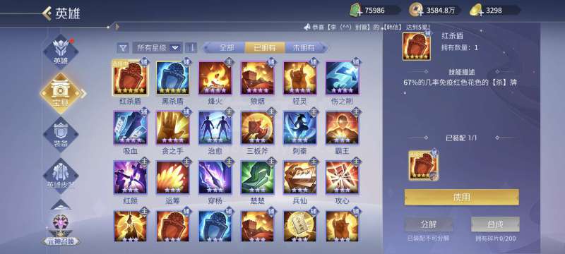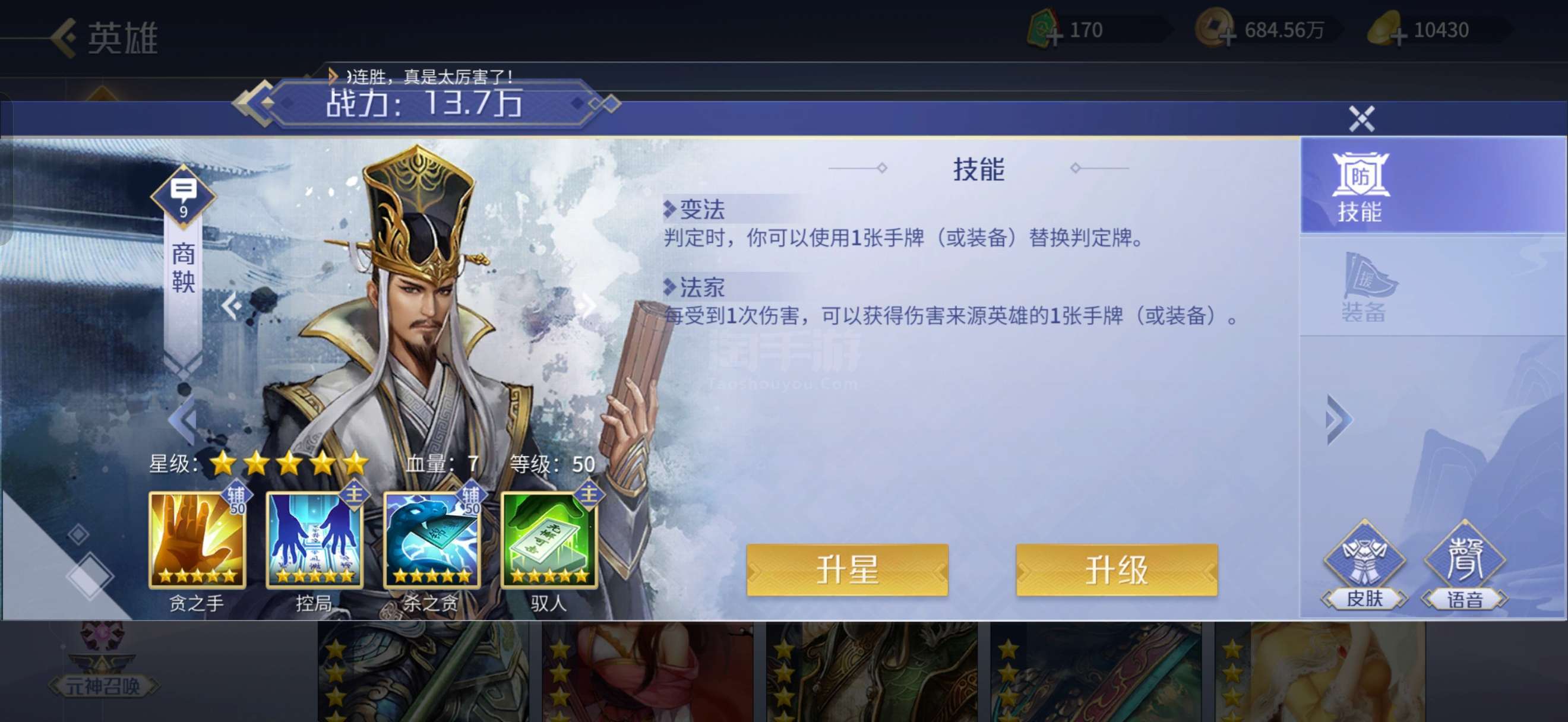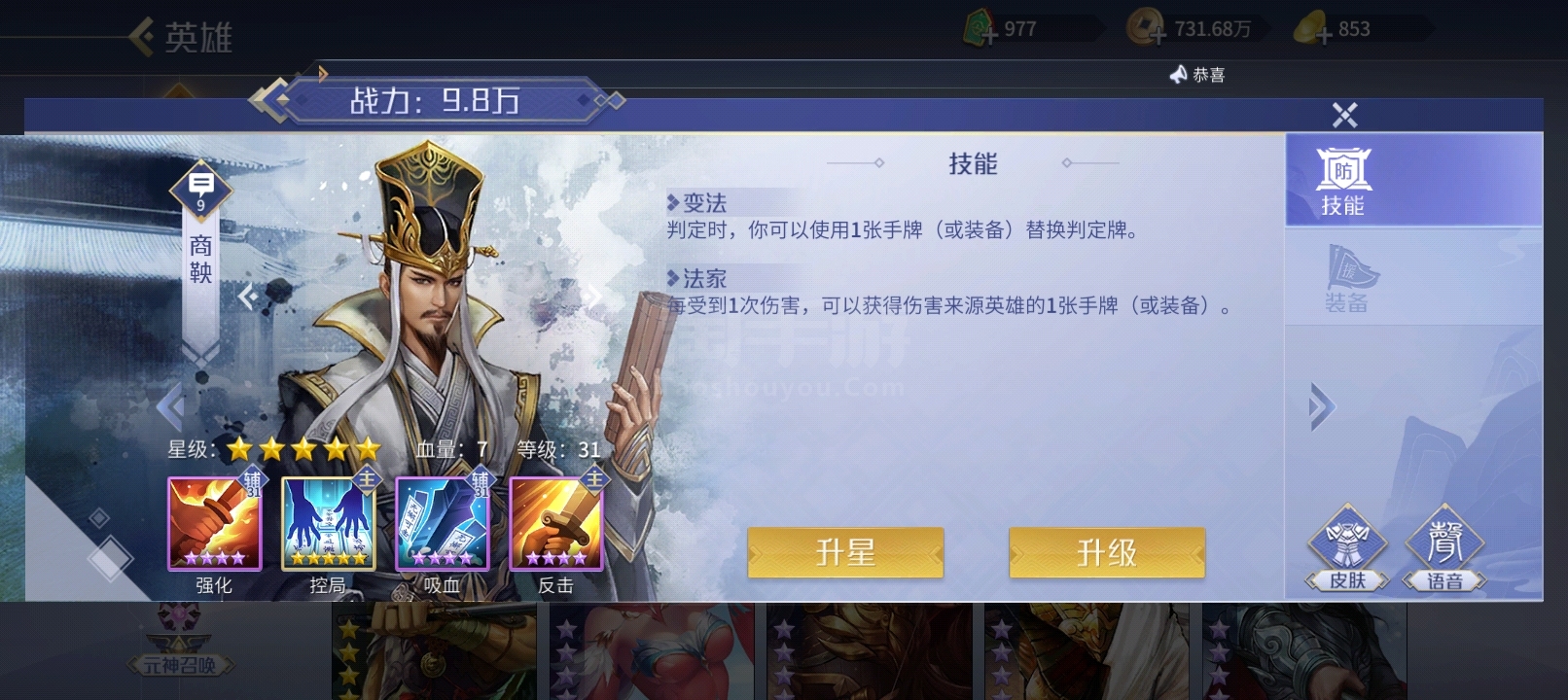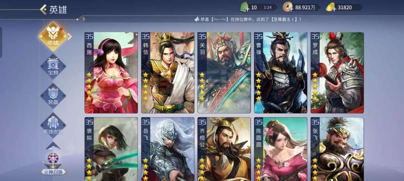 英雄杀【安卓微信】四大金刚商鞅毕业三星玉环五星英雄多多