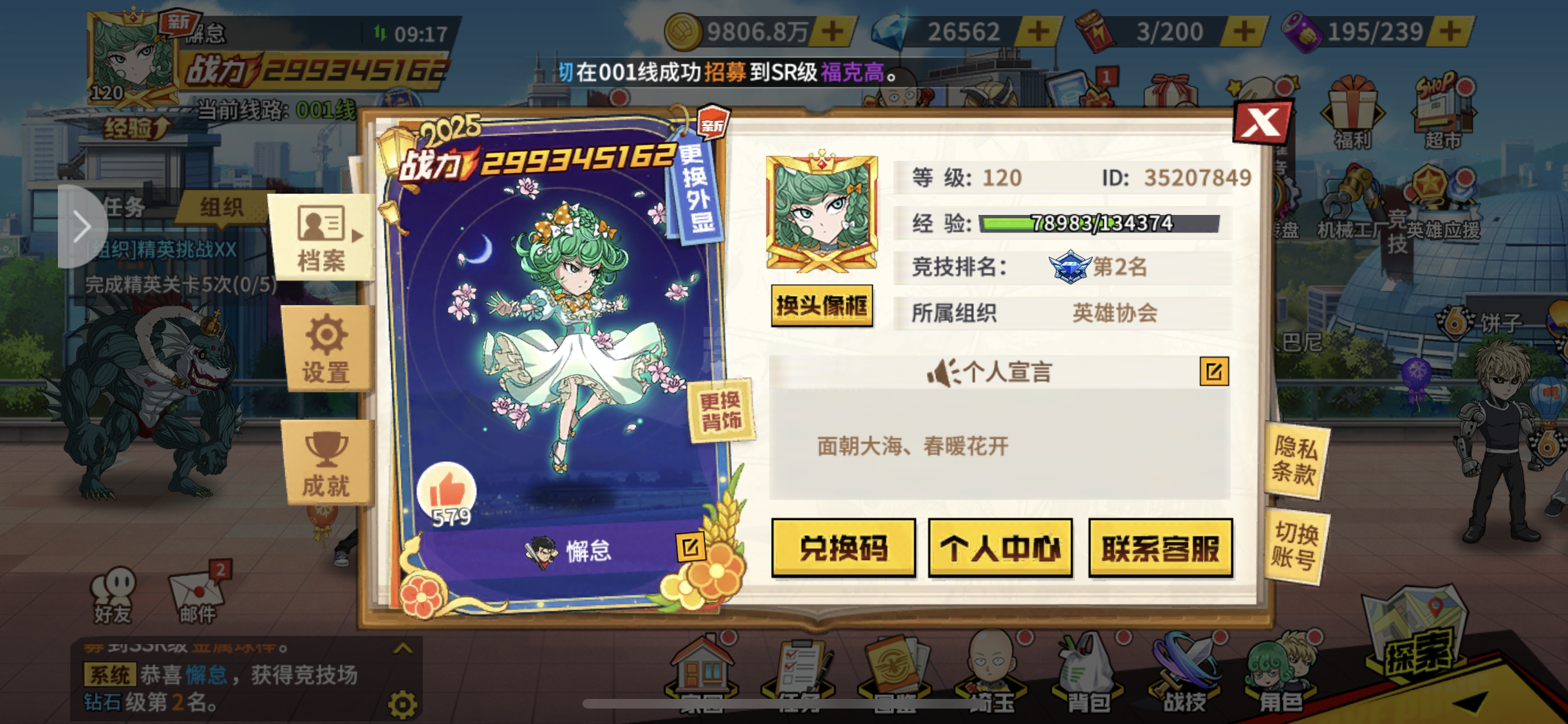 一拳超人:最强之男【安卓官方】安卓官服无绑定260黑卷自抽号,随机区服,随机角色,要的直接秒就行