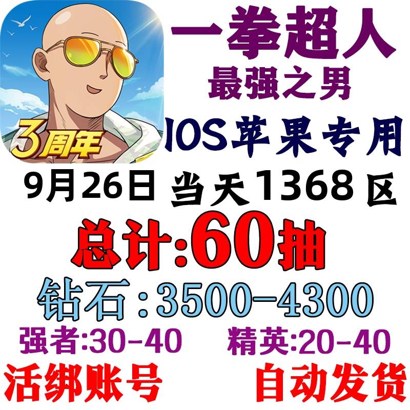 一拳超人:最强之男【苹果官方】2.7亿新区极品号。