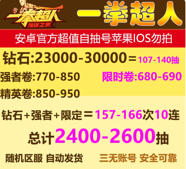 ♦单号580-450抽♦其中有:钻石2.4w强者130精英170♦