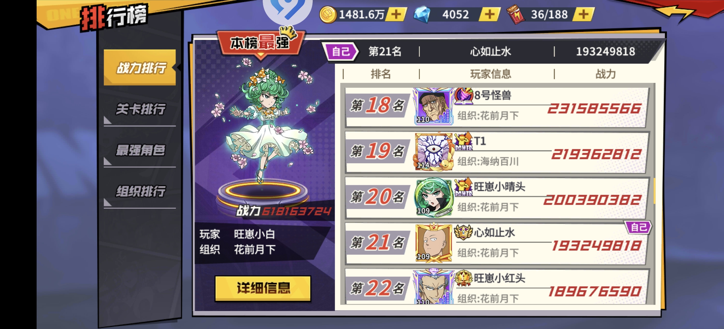 一拳超人高氪高练度成品号,1.9亿战力,4万累充,3.5折续充,超人服,在新区最强组织,巅峰第一