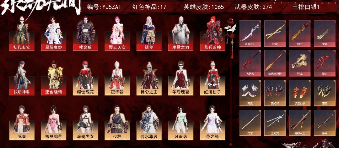 16红 47金 悍虎斩 监兵凶神 画中仙 帝星 灵狐幻刃 *冰魄 凤求凰
