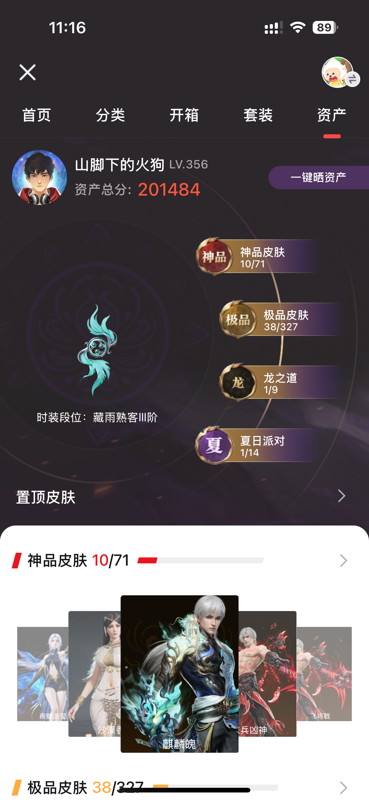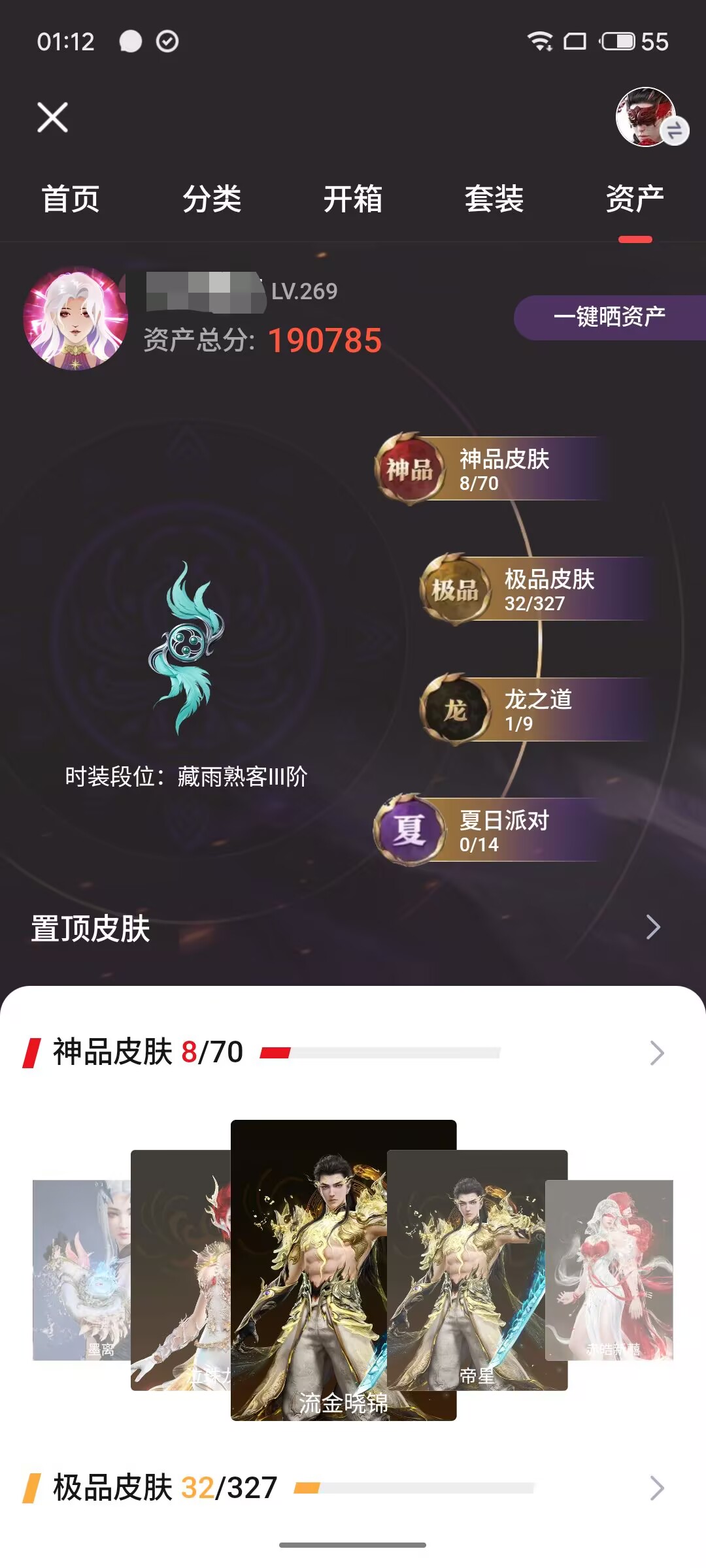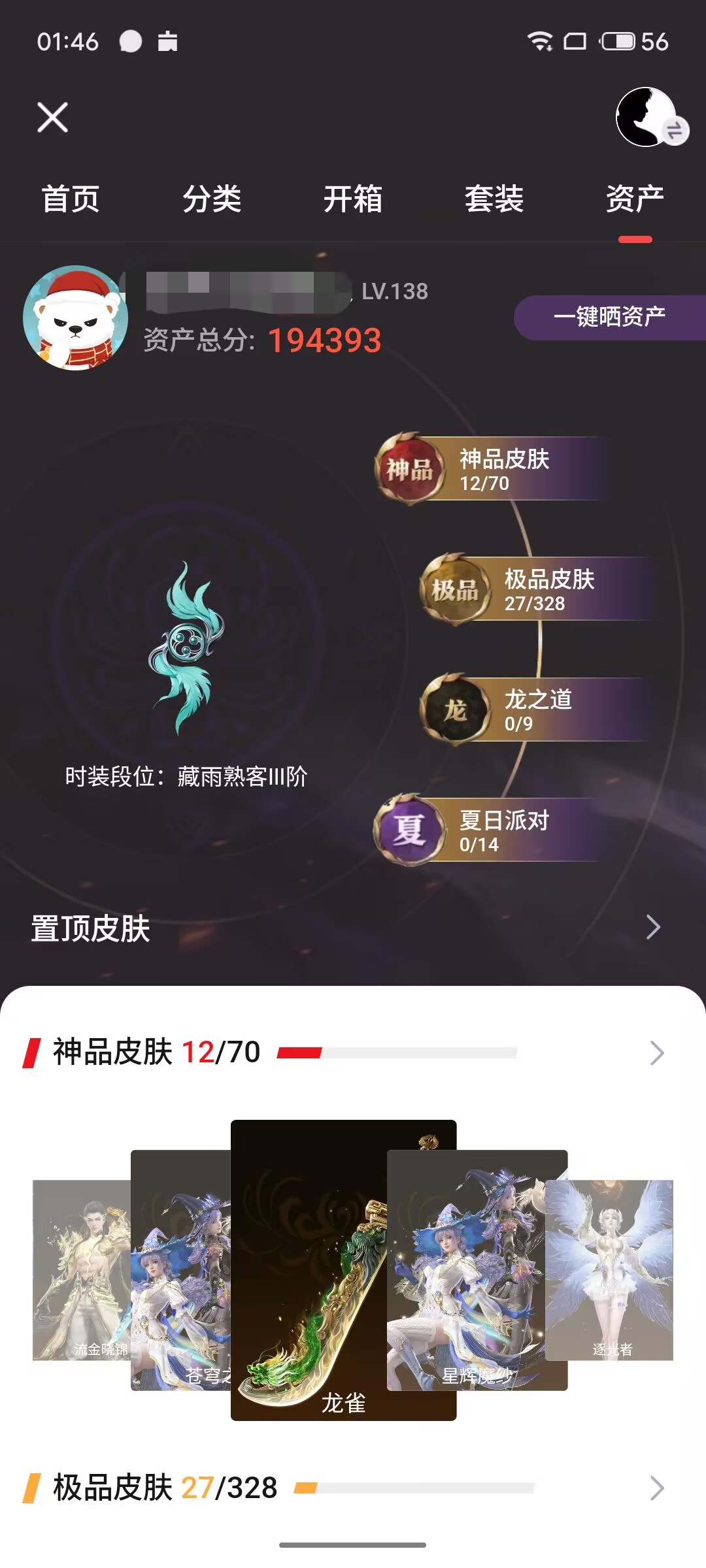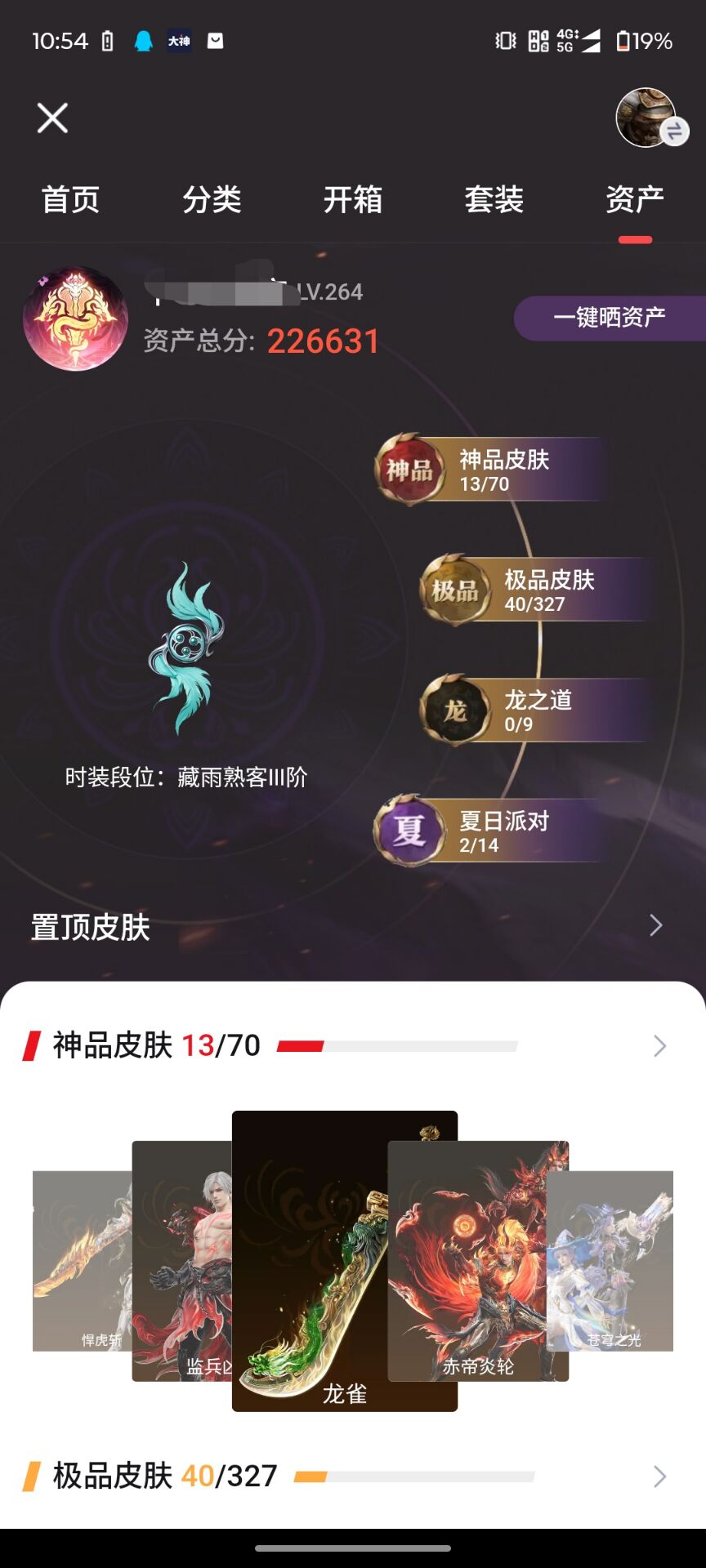 (11)红 (33)金 【神品皮肤】龙雀 星辉魔纱 帝星 执明神君 少阳剑