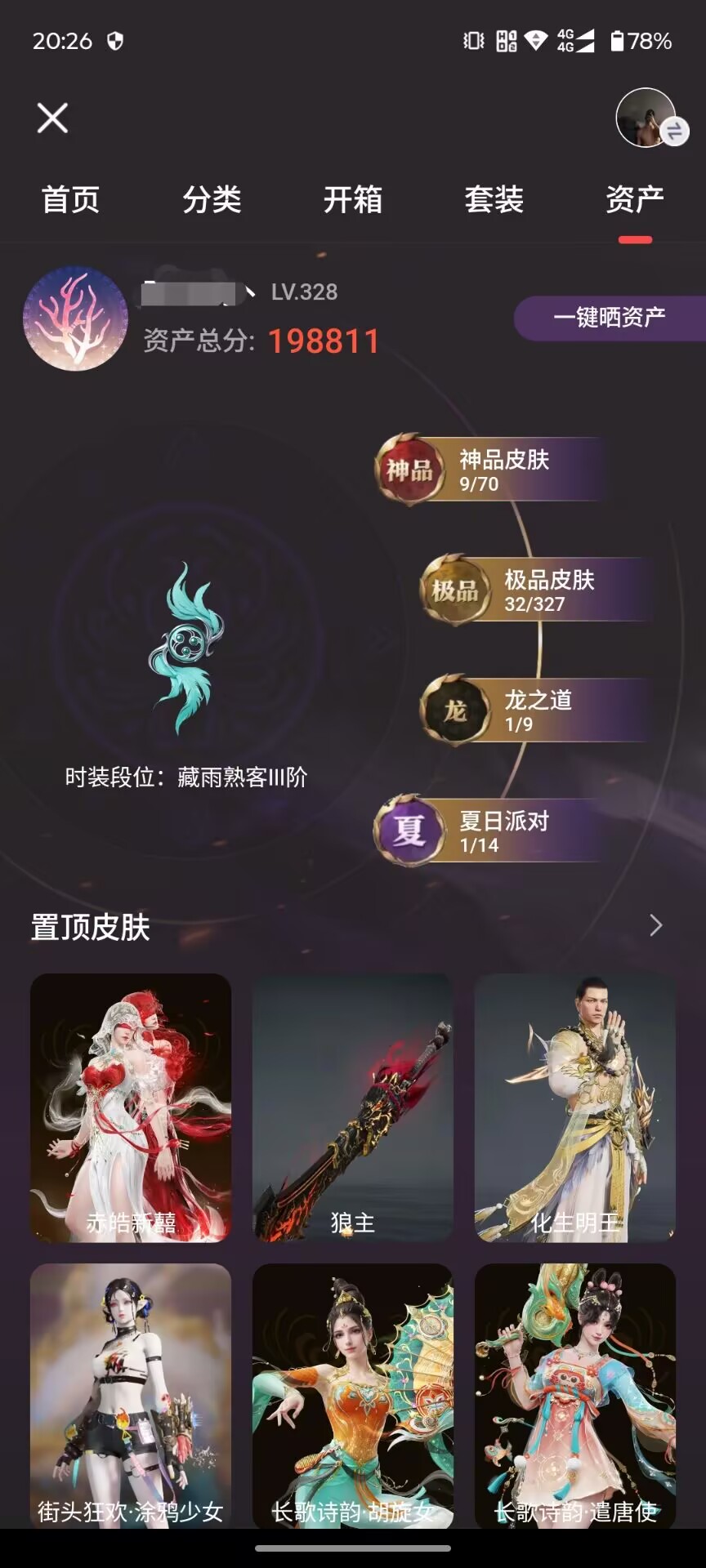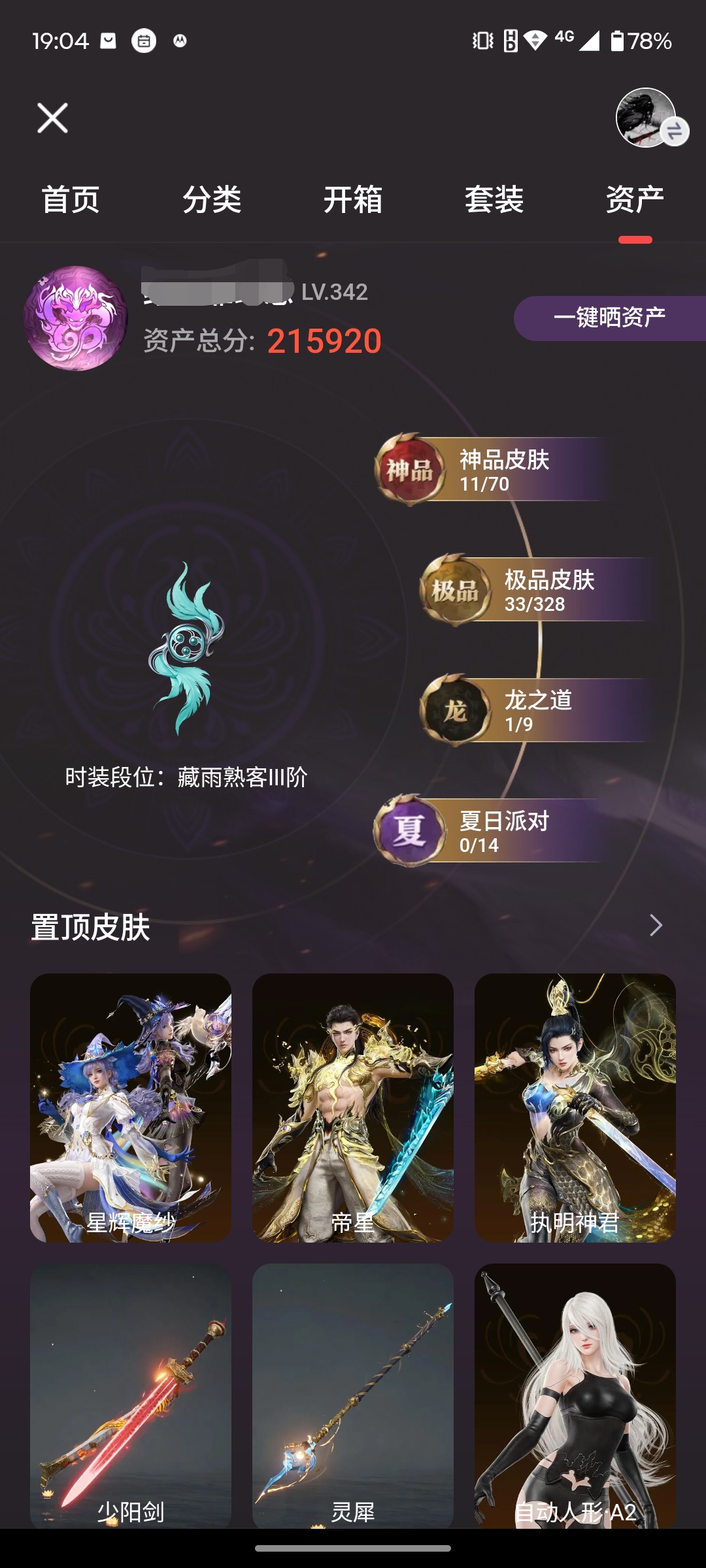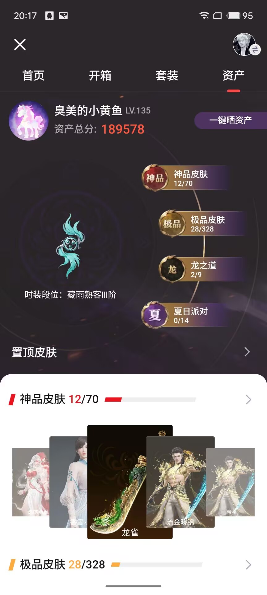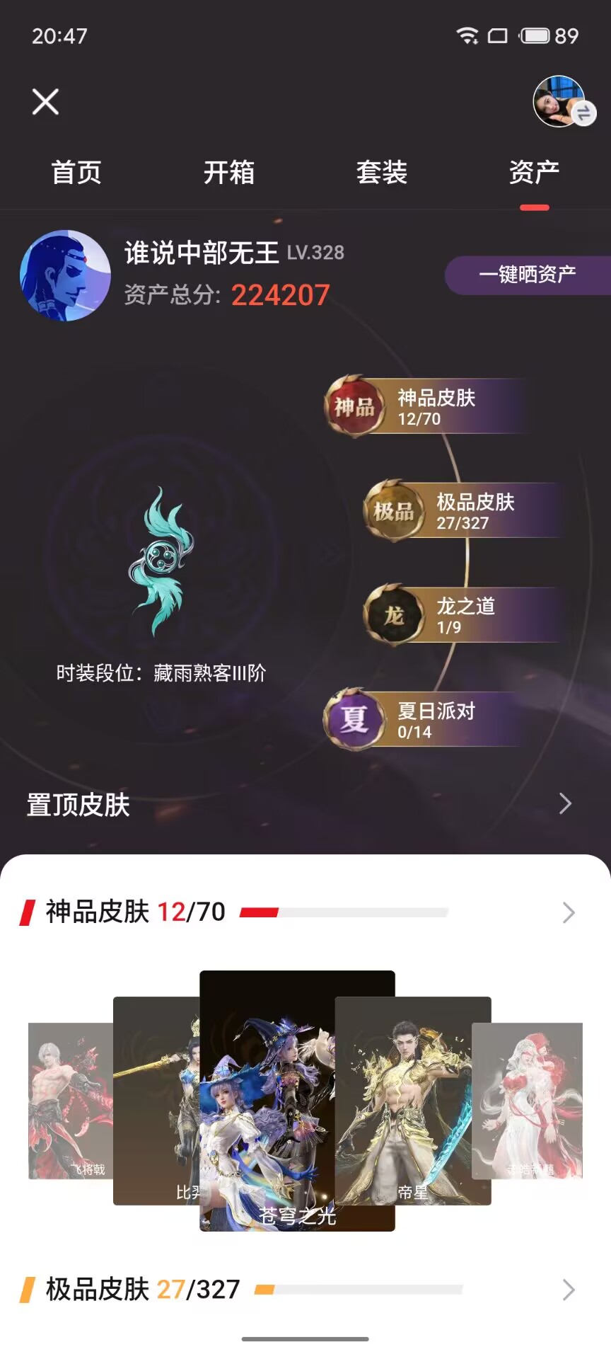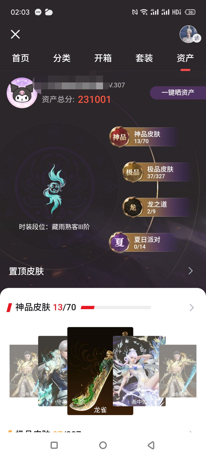 (11)红 (33)金 【神品皮肤】龙雀 星辉魔纱 帝星 执明神君 少阳剑