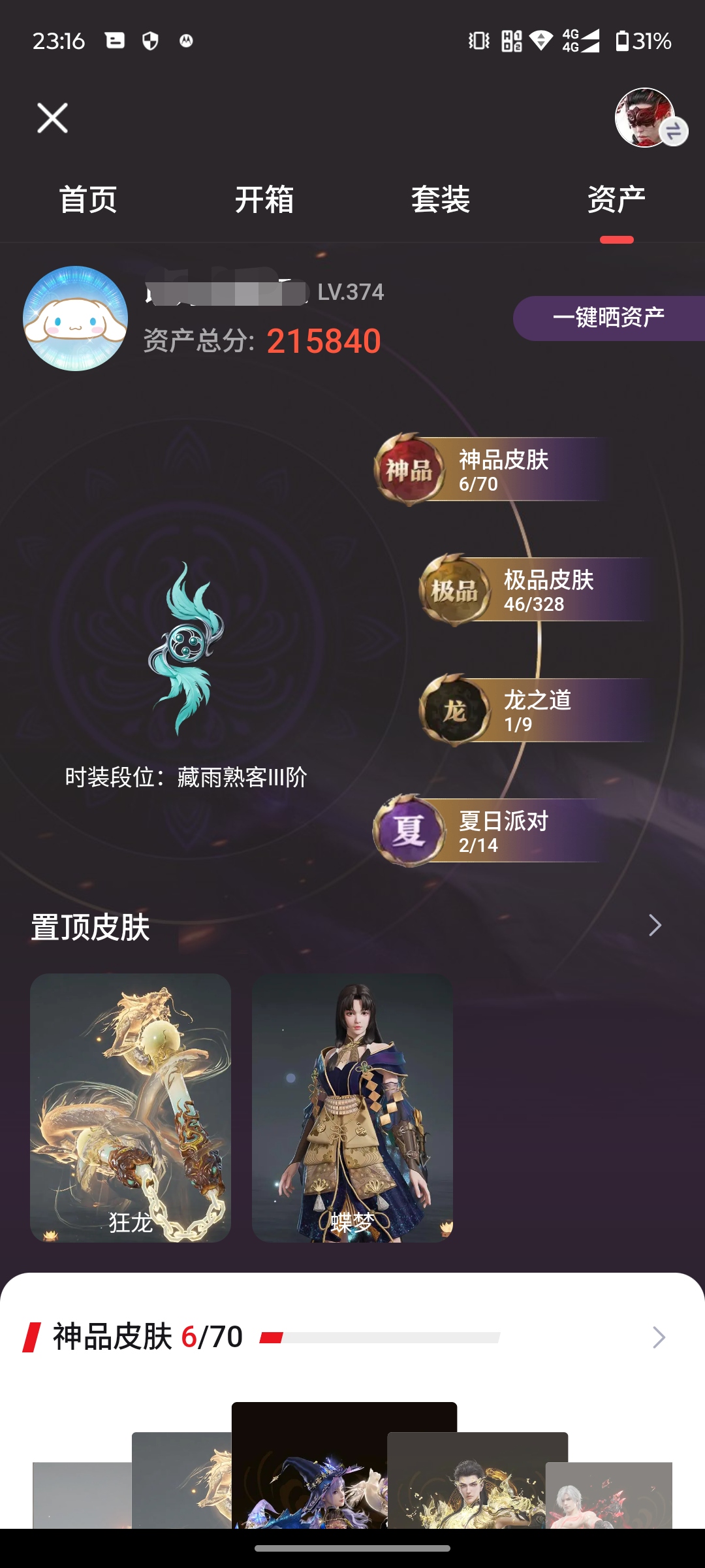【14红 37金 4龙之道 2泳衣】【游戏等级】217【大区】国服