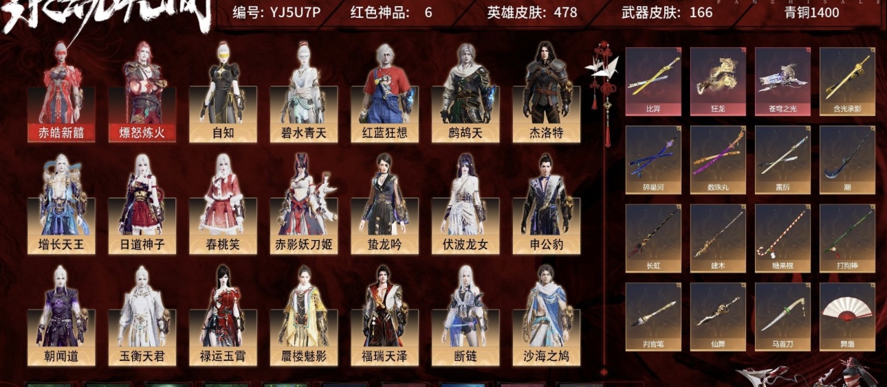 永劫无间(pc版)【端游】退游八红,有金箍棒水扇等