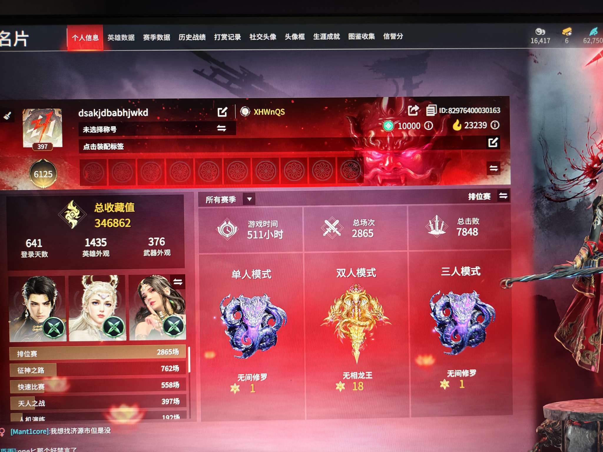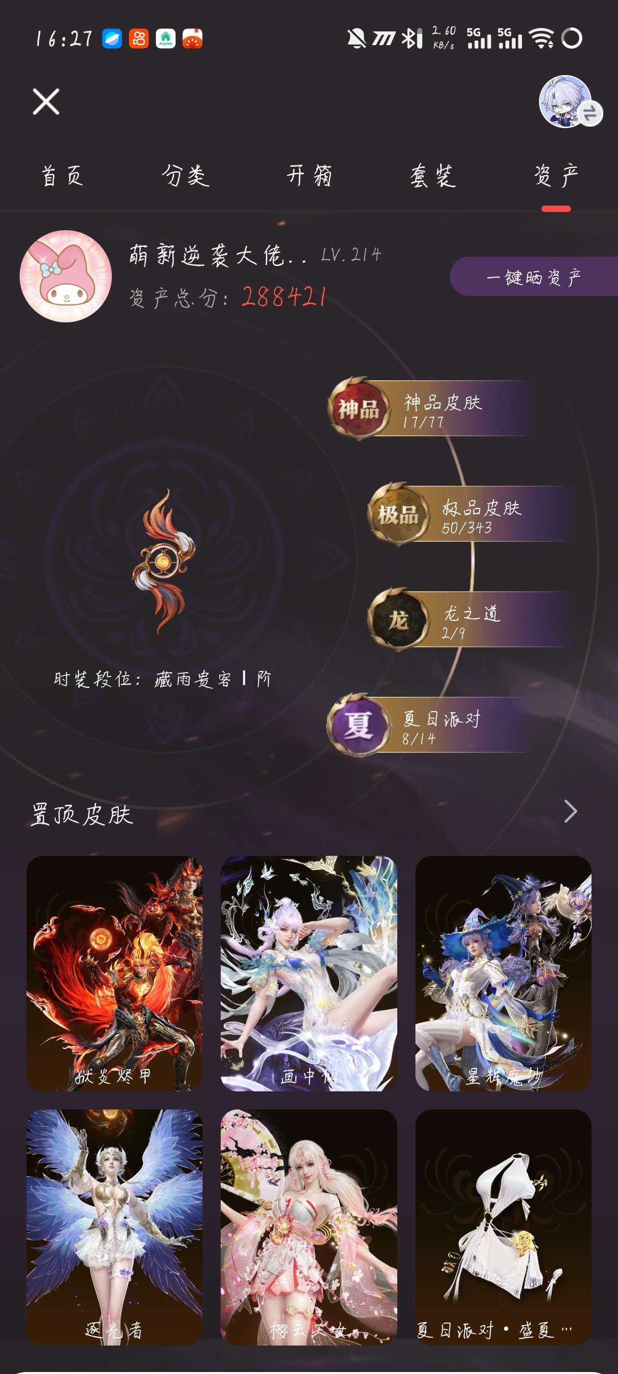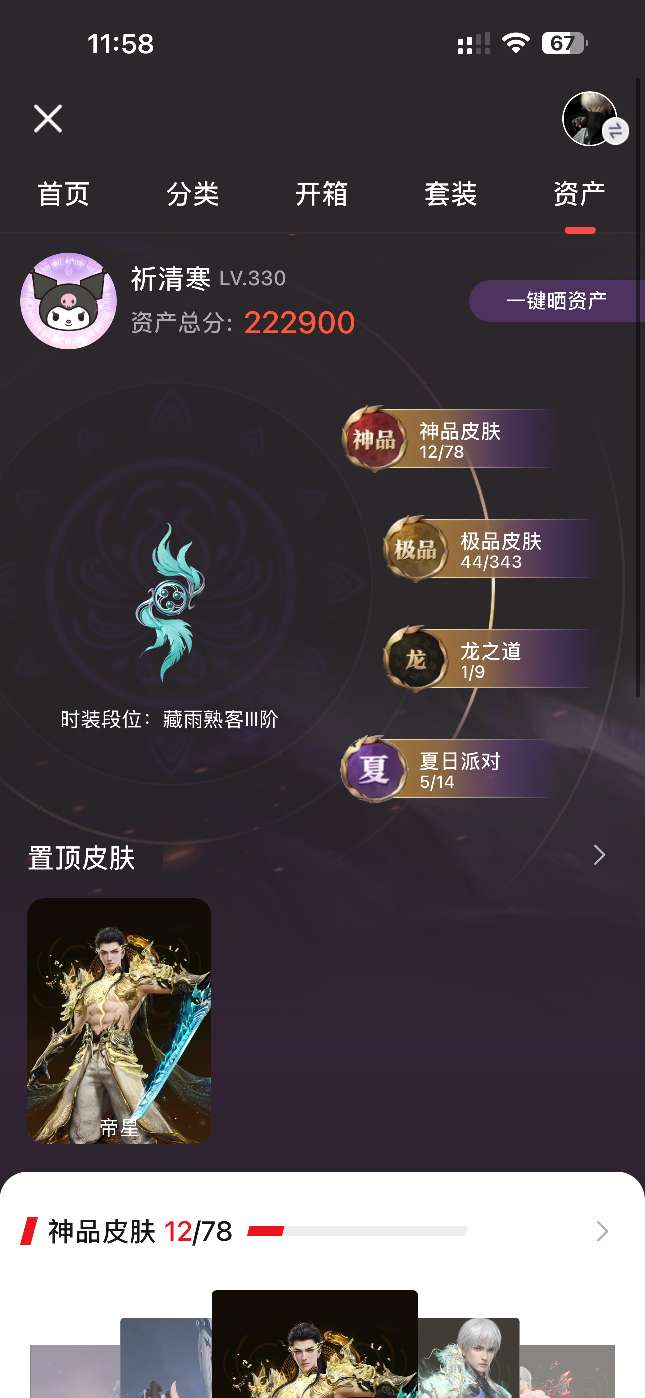 17红 钩索白兔先生 8个泳装 两个龙之道 胡桃春桃笑 段位无相龙王16星