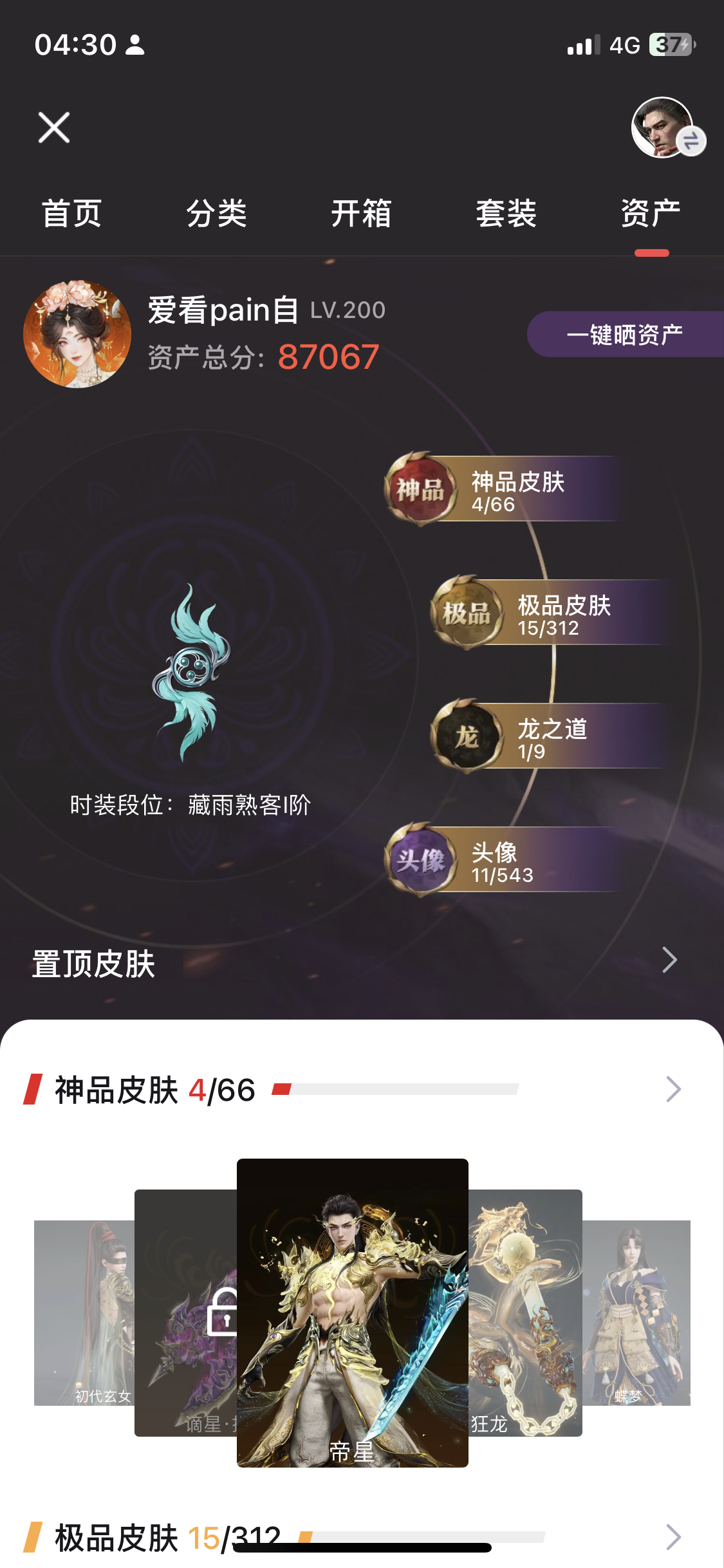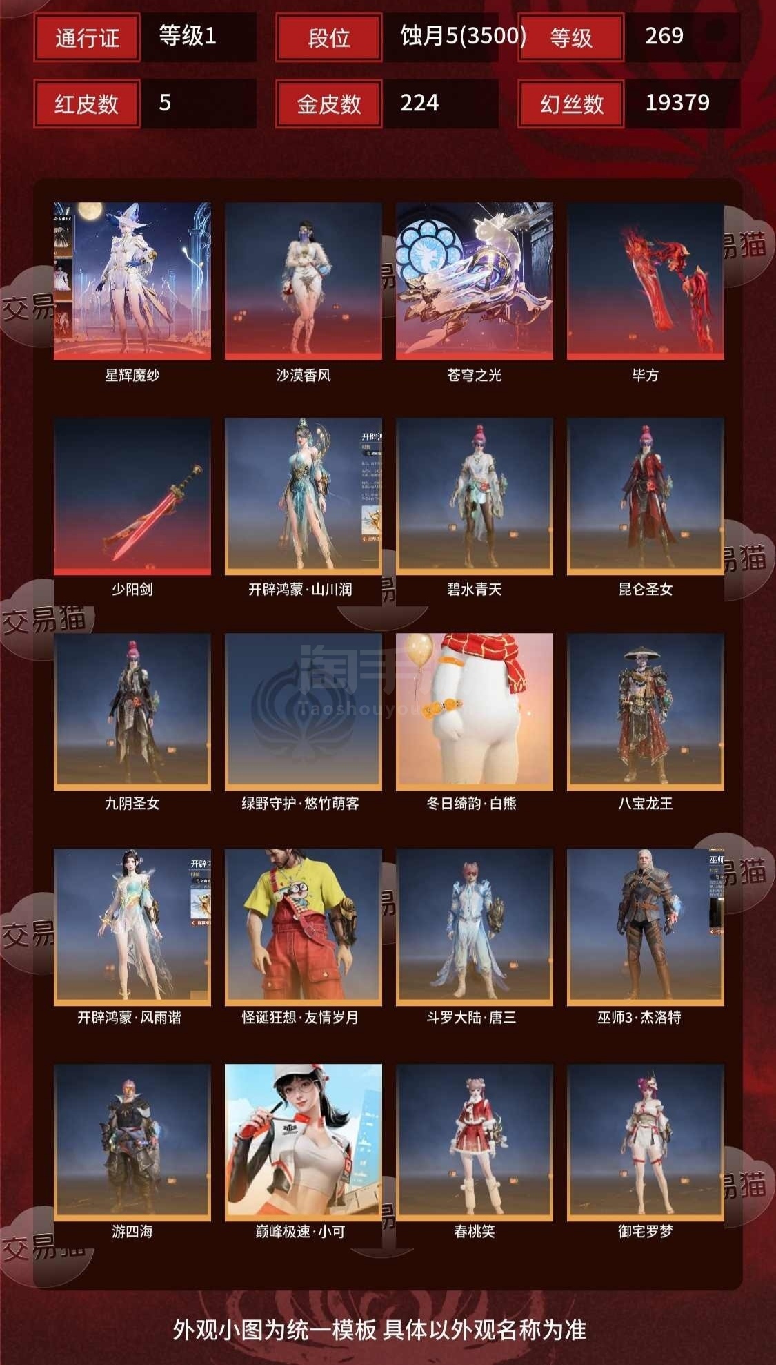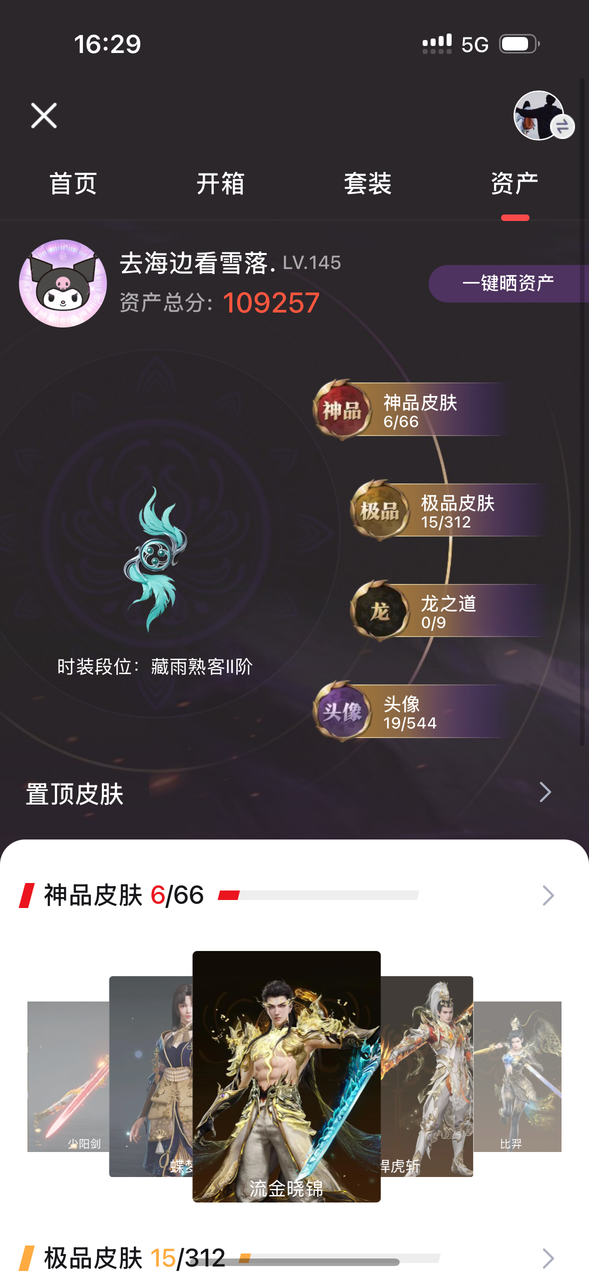 21红 527金 三排陨星3(3273) 幻丝140278 金砖151 通行证8级后续一直在玩。