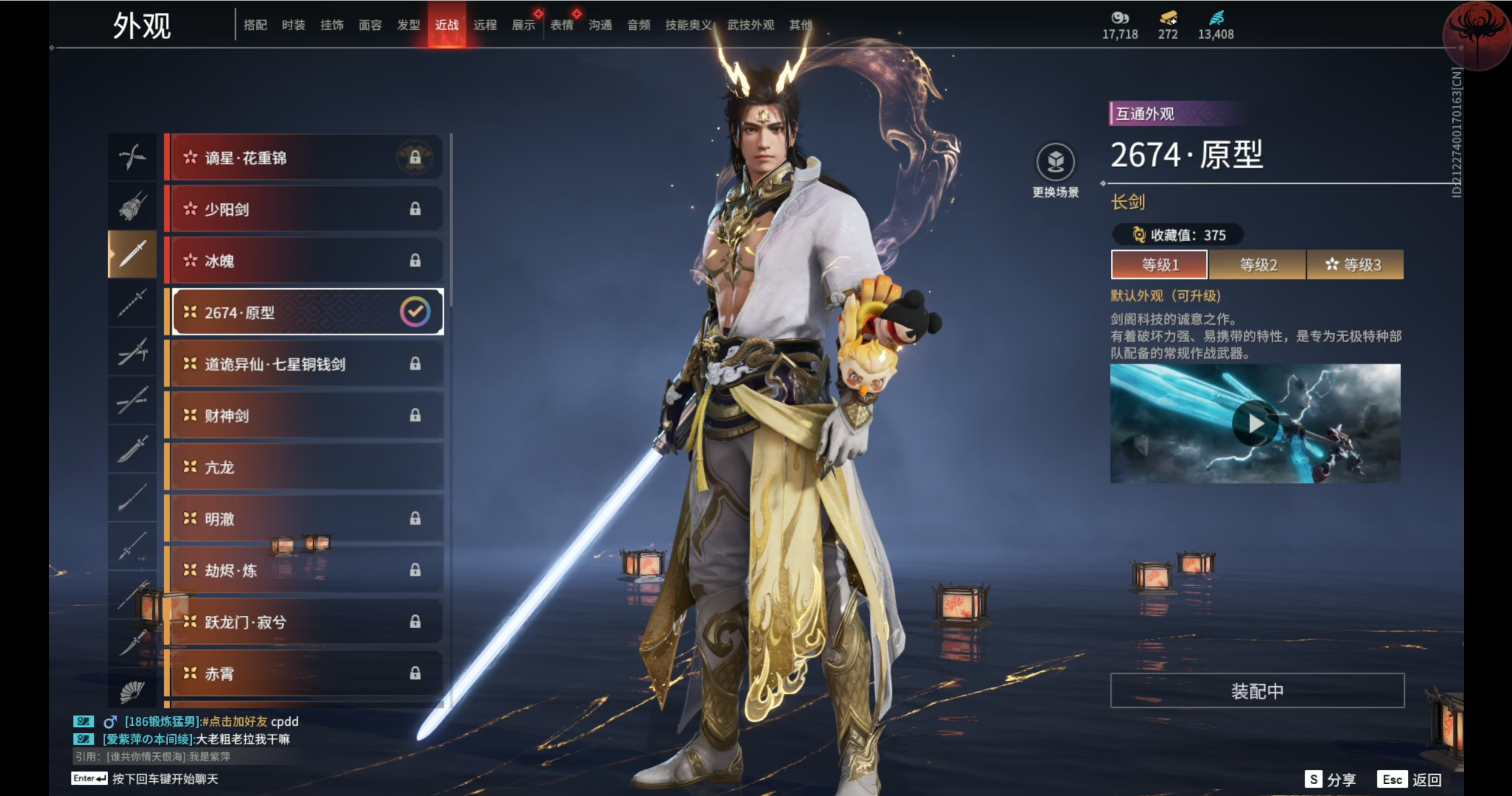 近战武器每把都有金皮。双刀二级升级皮。双截棍咕咕鸡。