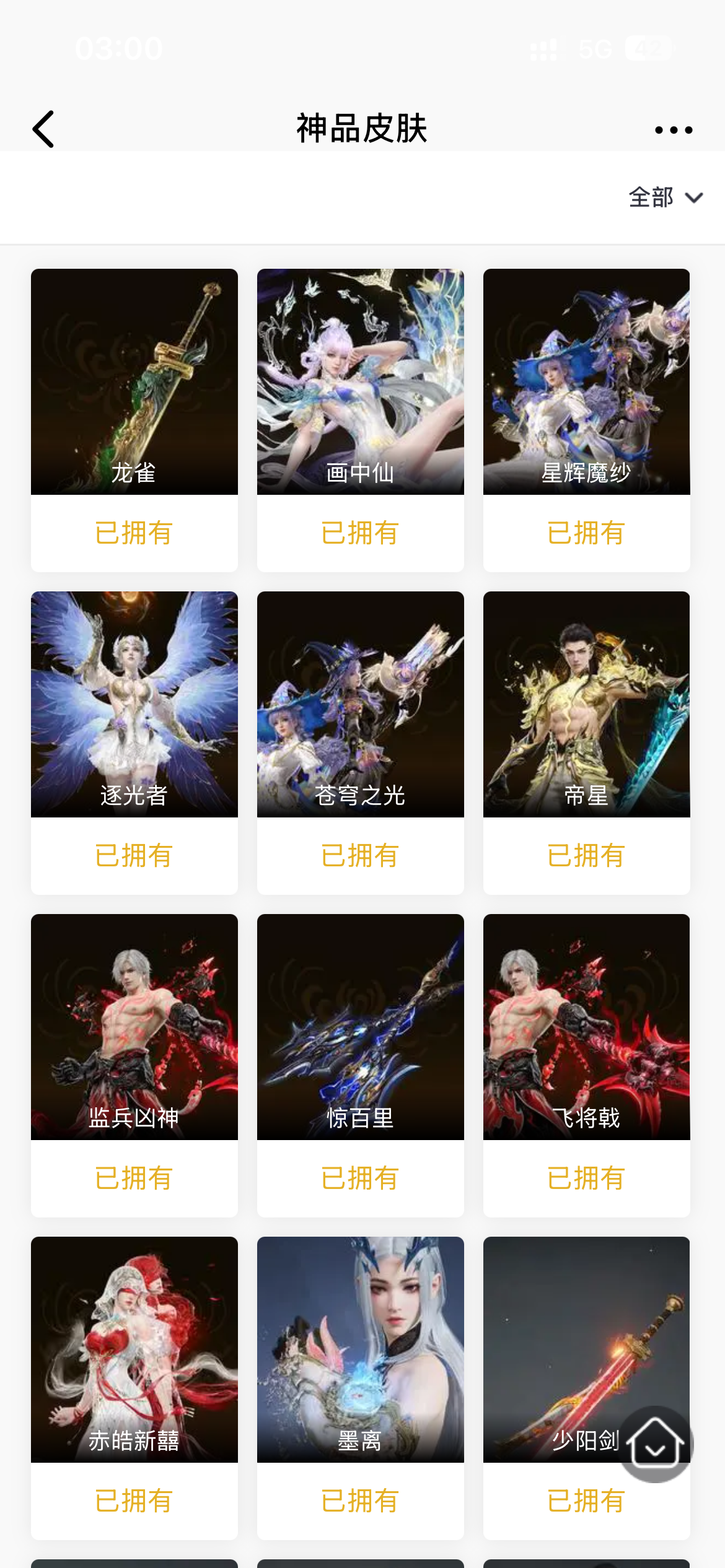 殷紫萍冠军皮,还有金皮红皮很多,历史修罗,退游不玩了