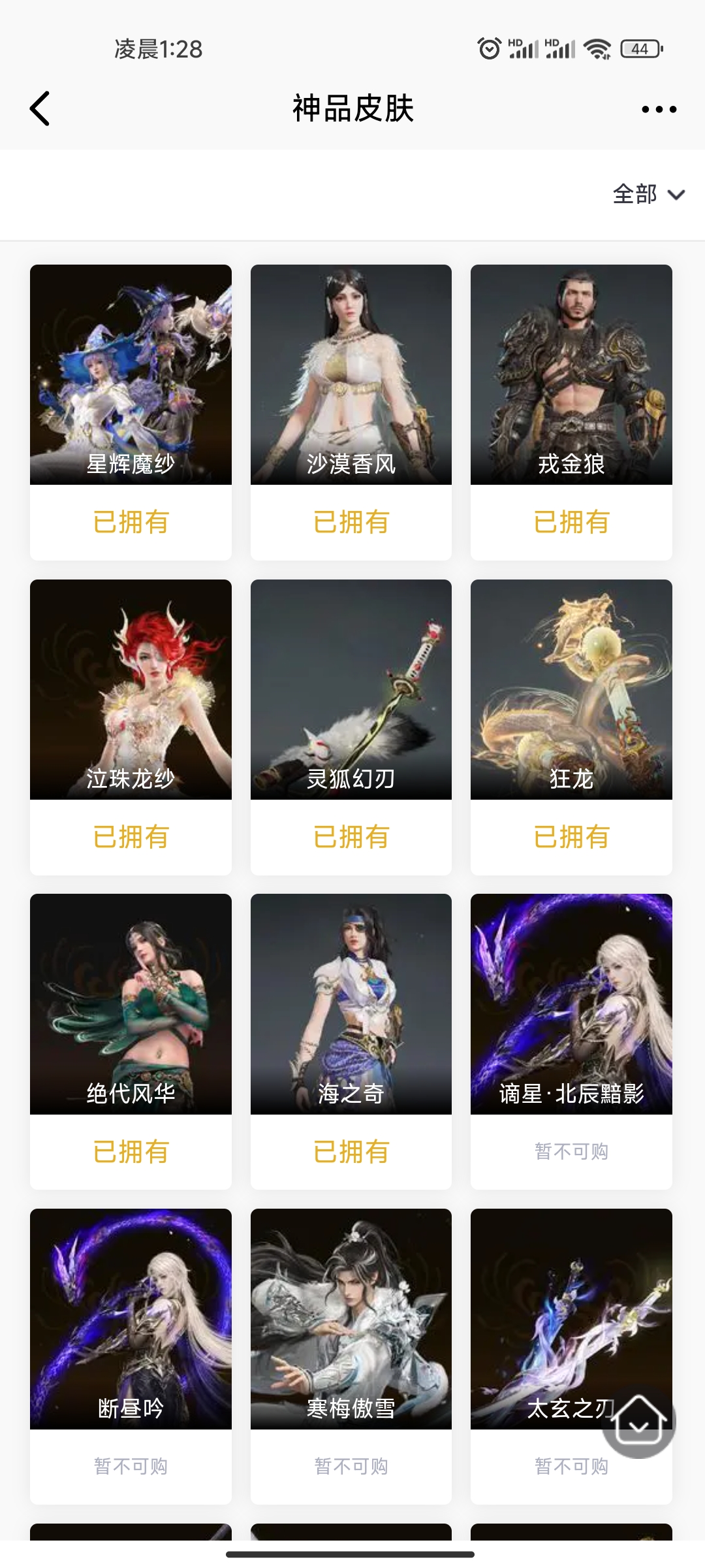 20红 44金 1龙之道 帝星 天琼 悍虎斩 夜魅游莹 樱云天女 换绑