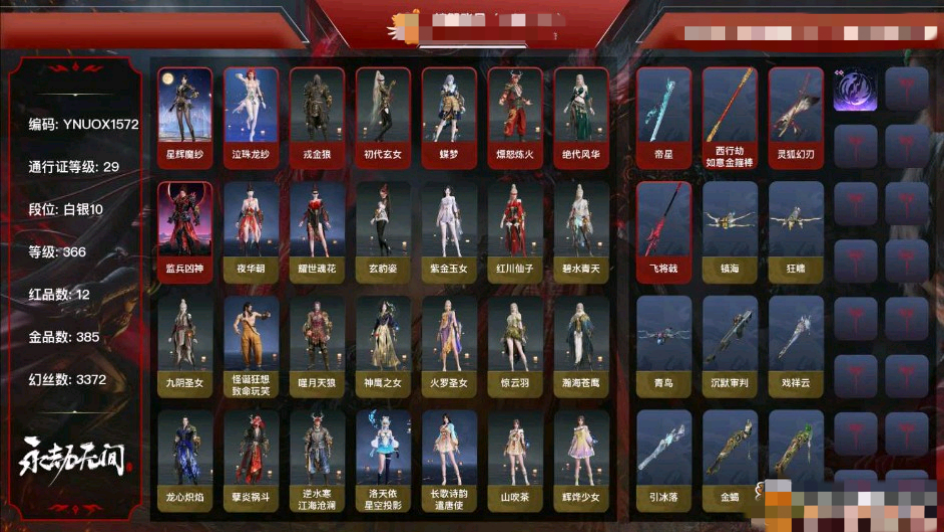 【游戏等级】368 16红 39金 1龙之道 画中仙 锦鲤玉扇 帝星 飞将