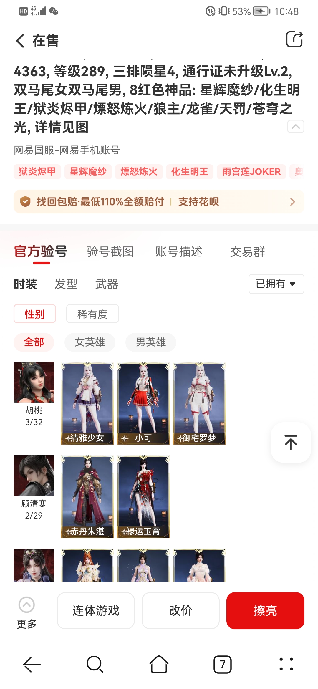 永劫无间】8红神品690英雄皮196武器皮 陨星4段 全皮毕业号