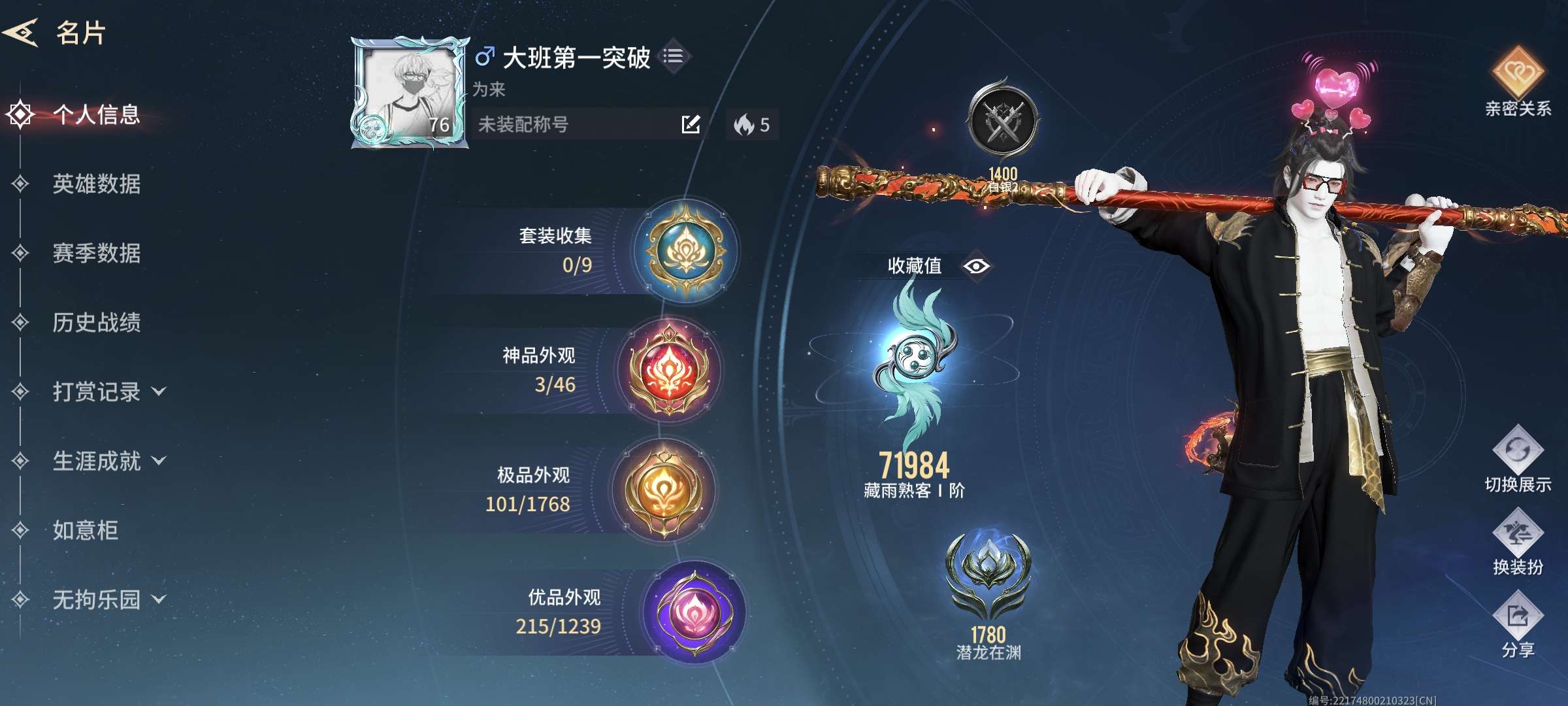 15红488金, 总收藏值271878, 通行证等级Lv63,月卡150天还有没绑端,匕首差三十抽出