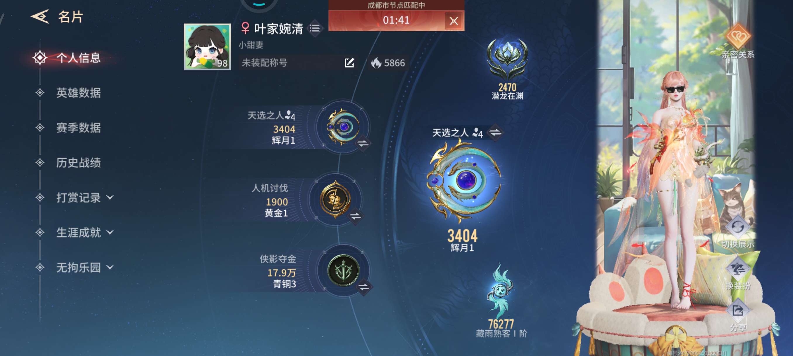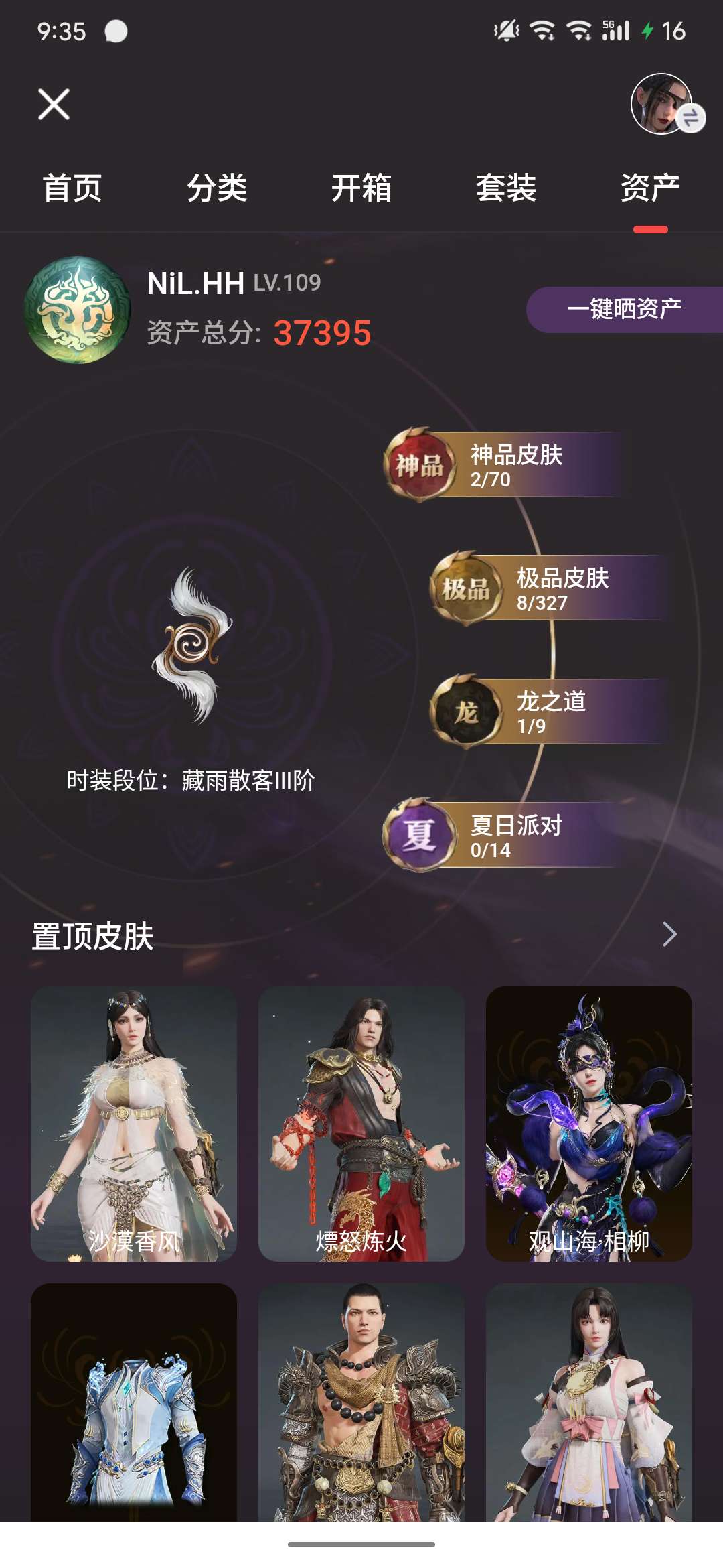 退游不玩了,急出 6红378金, 总收藏值149451, 等级226, 段位耀日5 3565