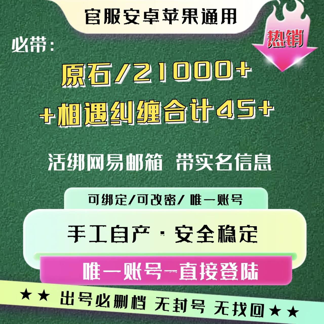 原神【安卓官方】⭐单号210-300抽⭐原石21000-25000⭐相遇纠缠45-70个⭐带实名信息秒改密⭐活邮