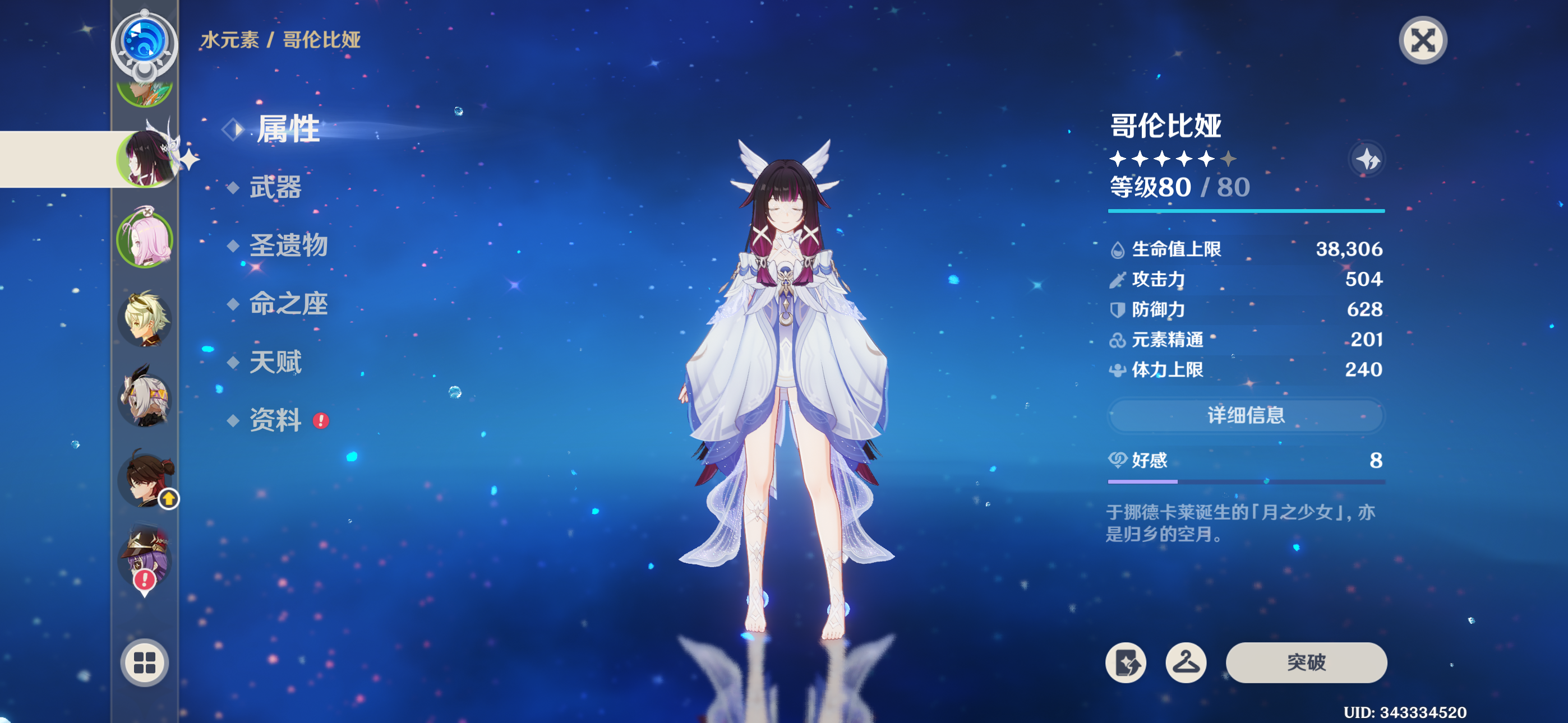 5-10级哥伦比娅(少女)/深渊未开/送改密信息,活邮可帮手机可改密