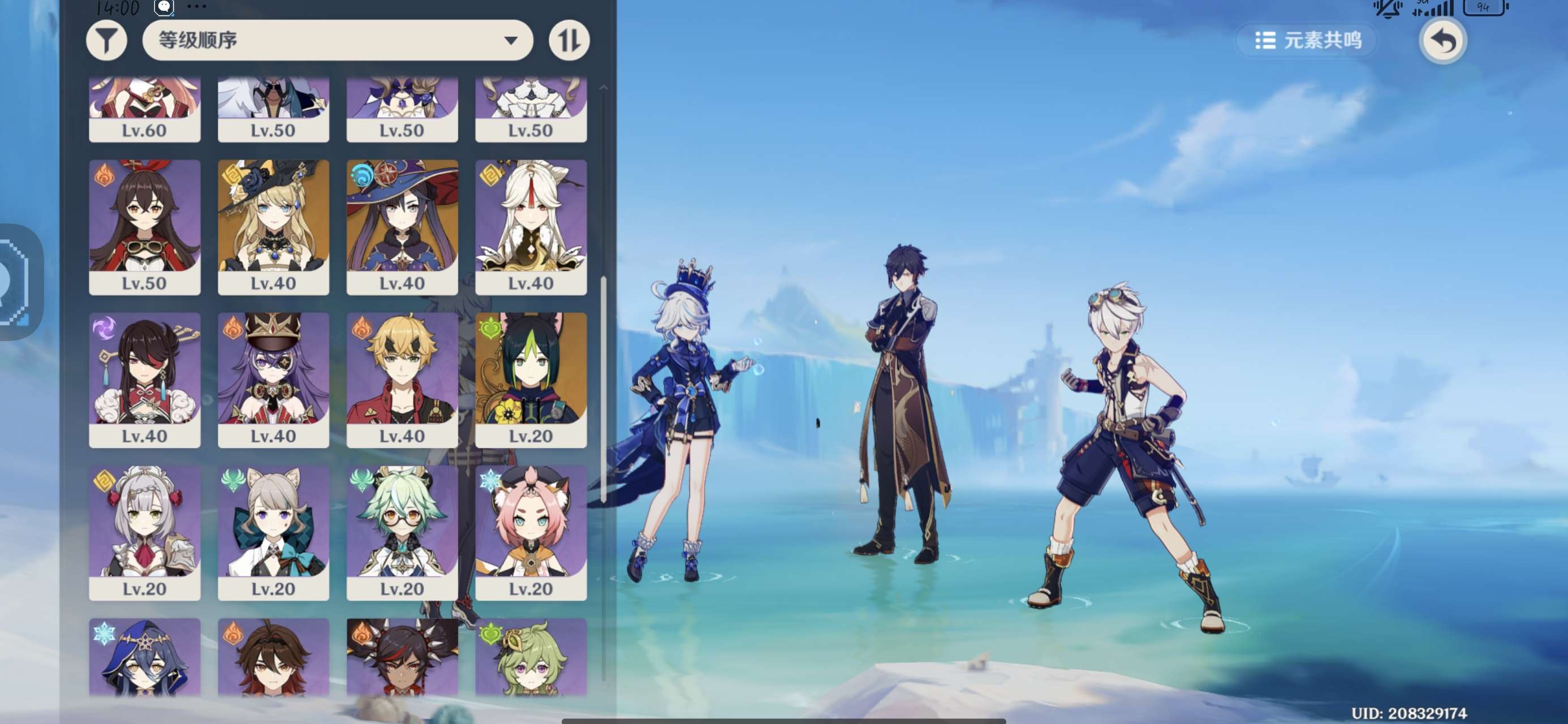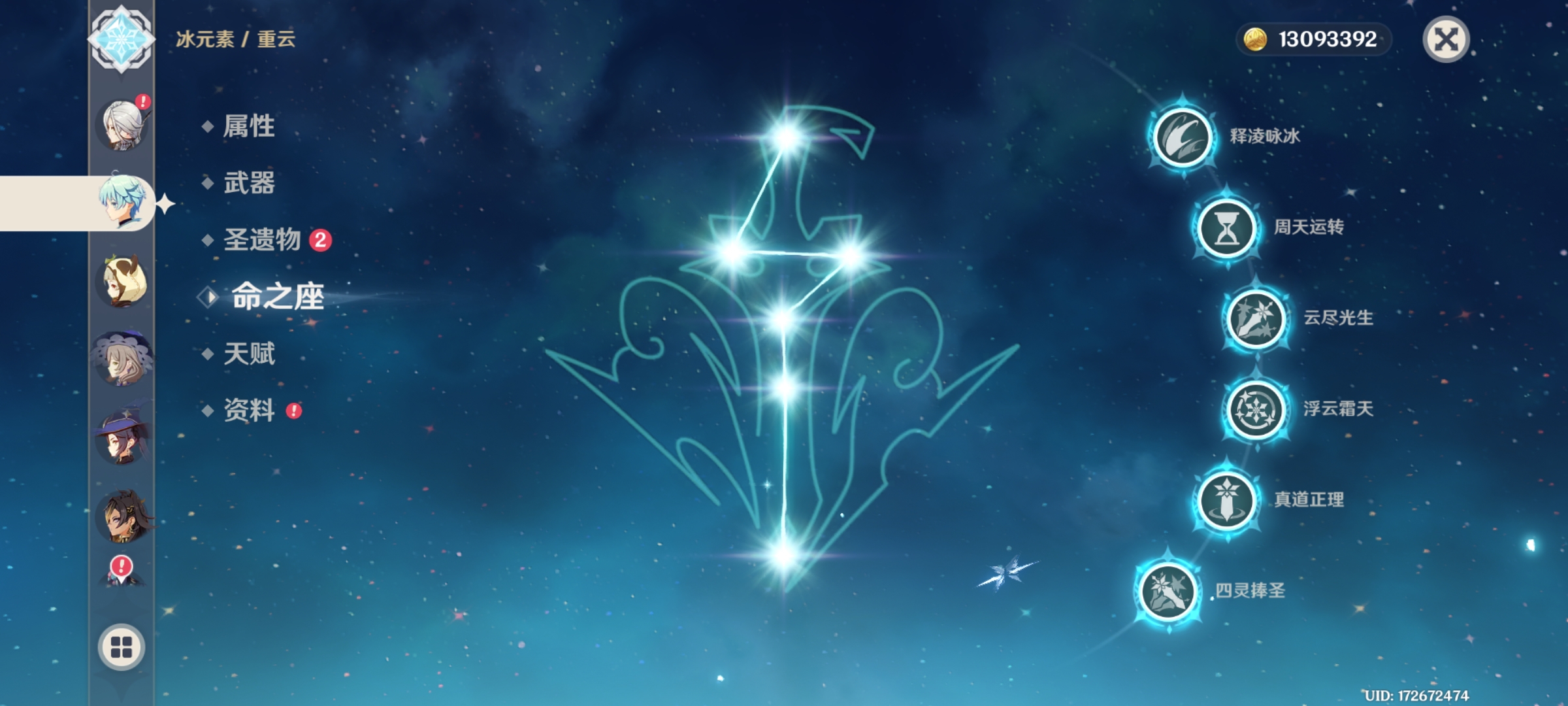 57级/24黄/女主/16个五星角色/4个五星武器/1命那维莱特/