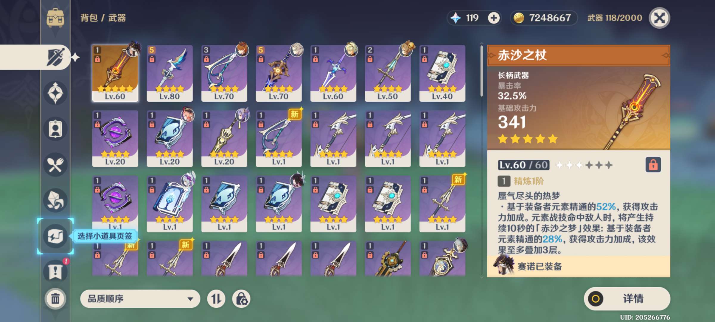 60级/男主/27个五星角色/0命菈乌玛/克洛琳德/芙宁娜/1命迪希雅/流浪者/2命纳西妲/