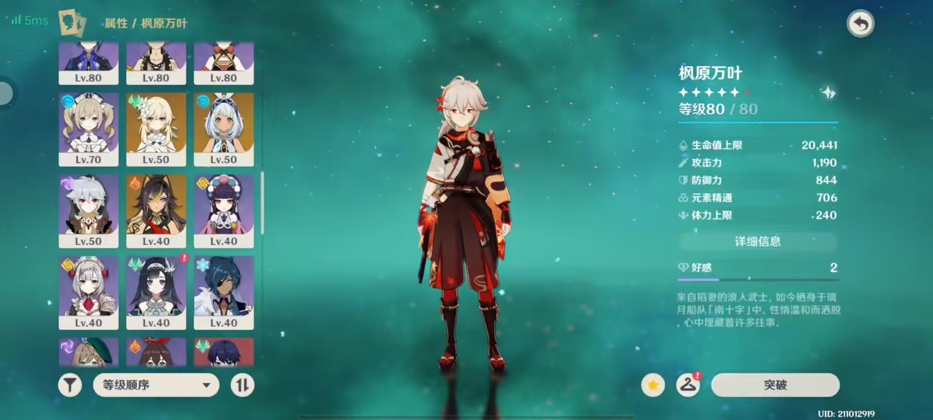 56级/19黄/女主/14个五星角色/2个五星武器/神里绫华