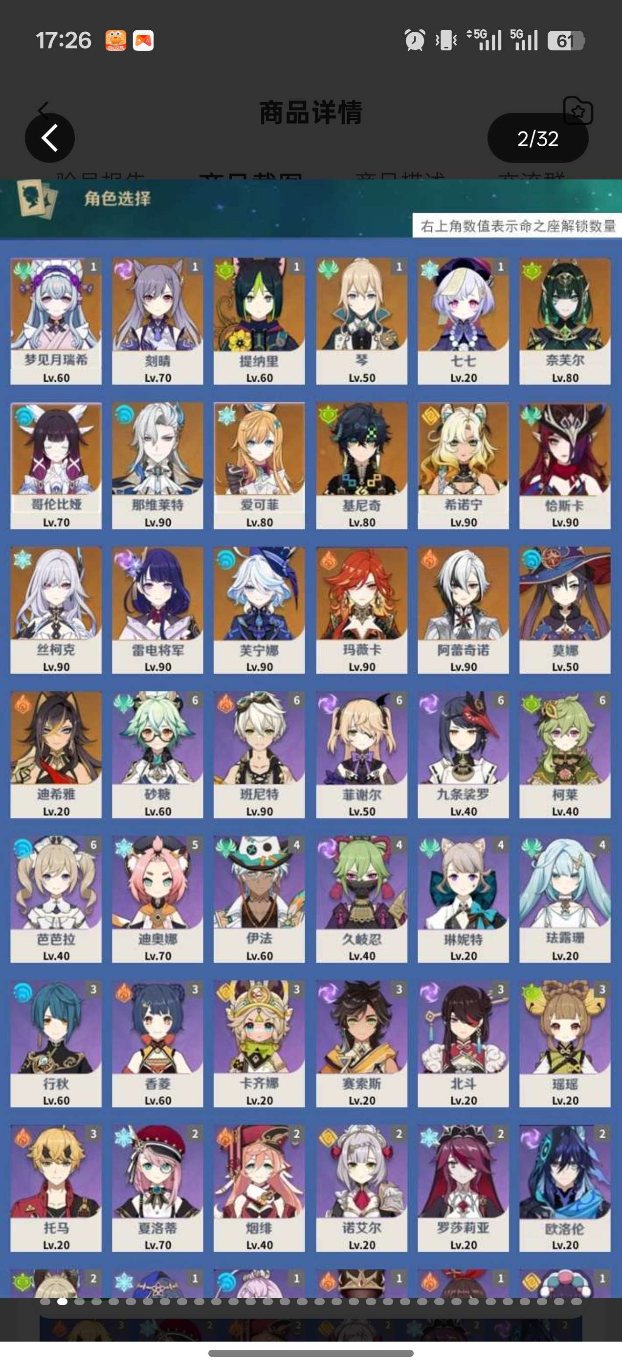 56级/23黄/女主/16个五星角色/5个五星武器/胡桃/夜兰