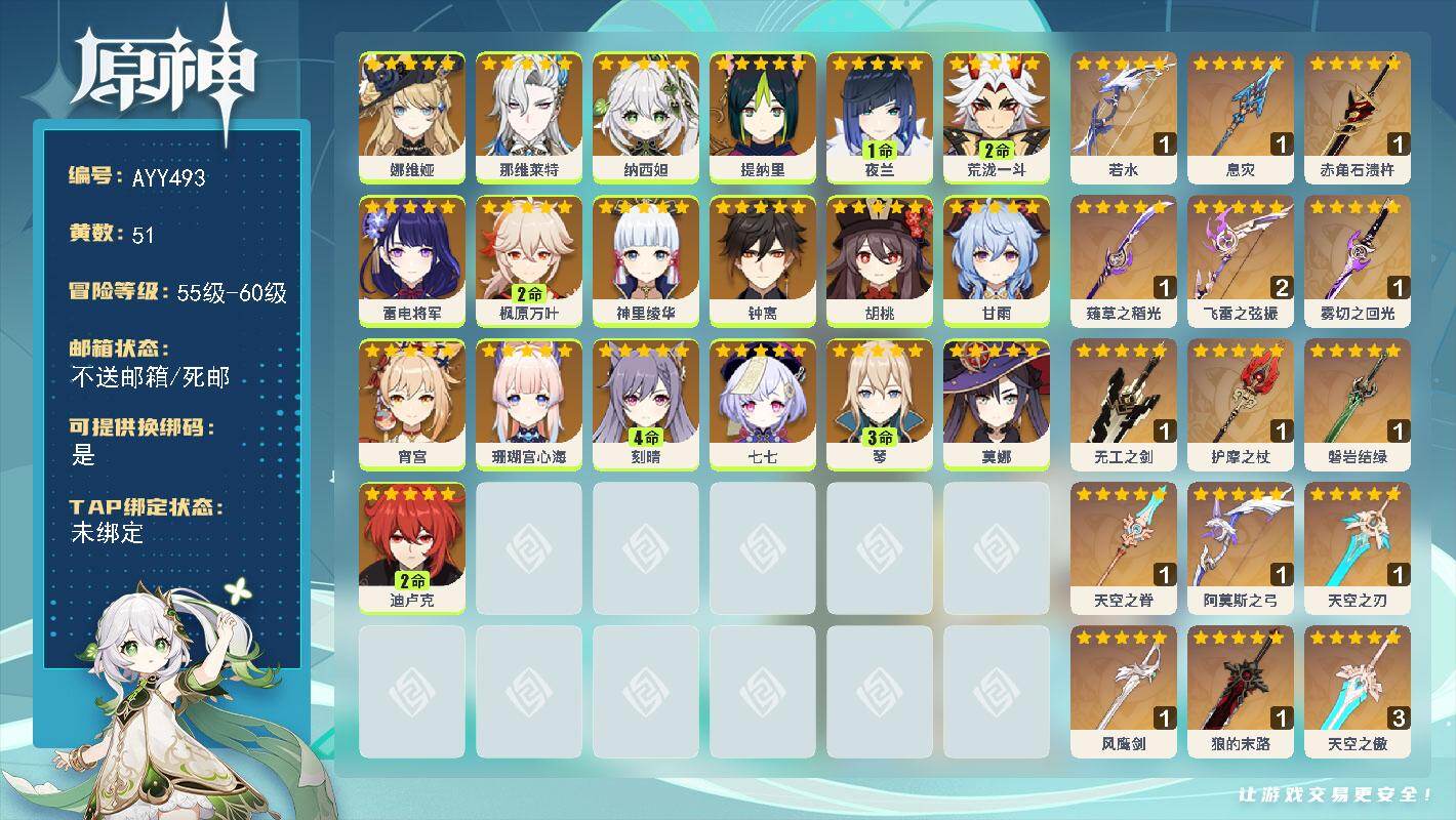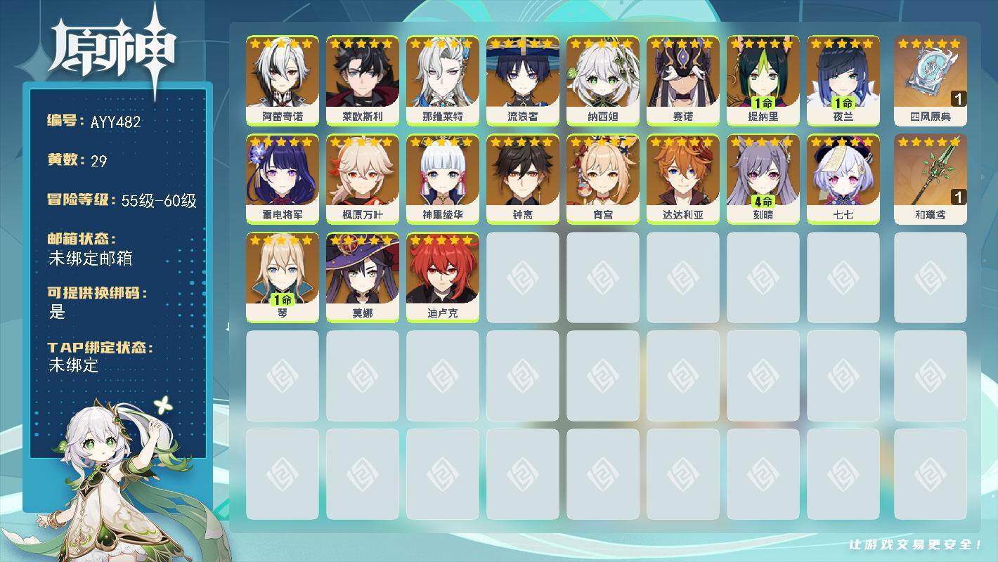 20-50级 【杜林十纳西妲】活邮送改密信息无大 手机