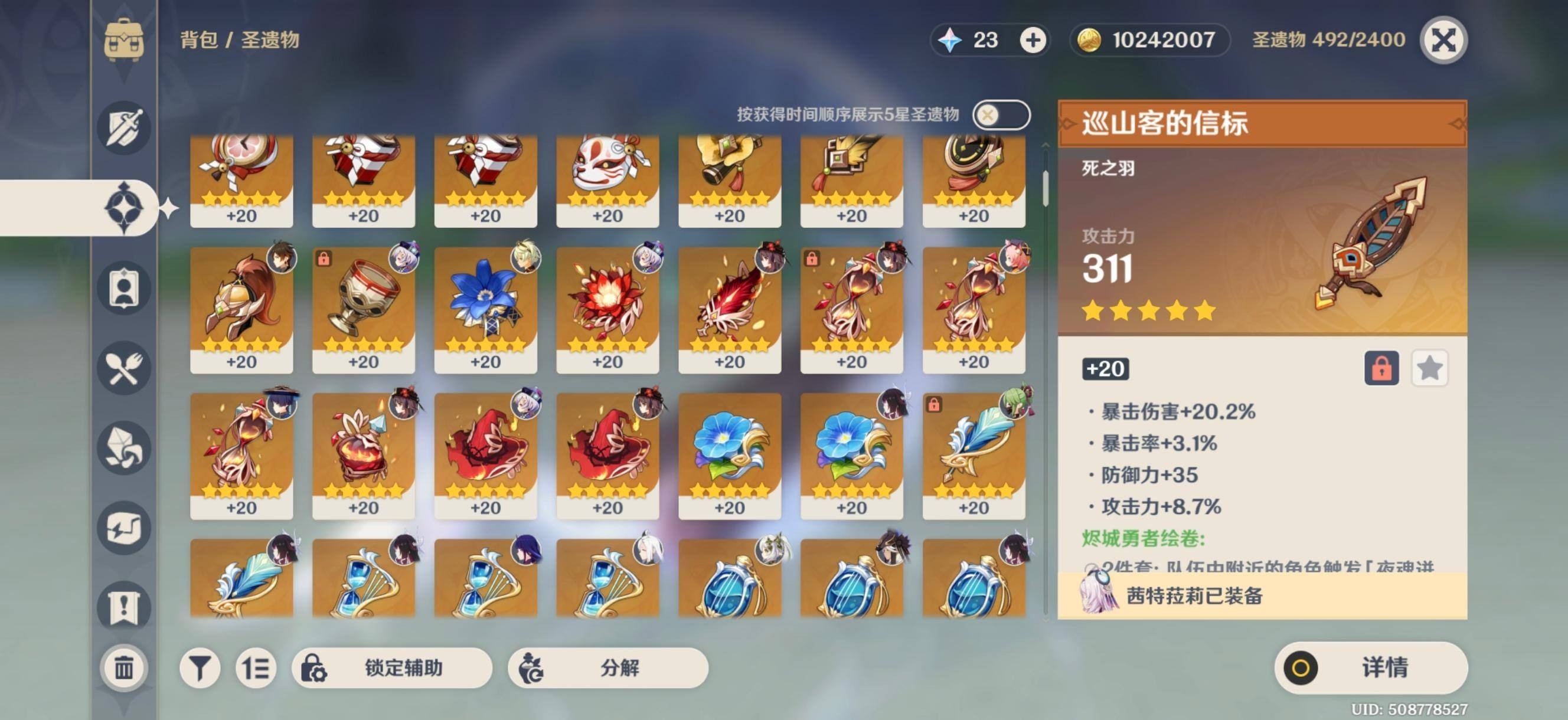 60级/167黄/女主/32个五星角色/6个五星武器0命希格雯,0命阿蕾奇诺,1命