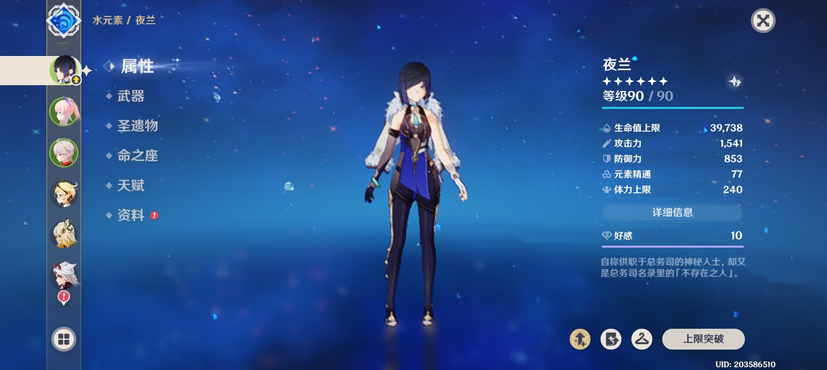 57级/20黄/女主/13个五星角色/5个五星武器/