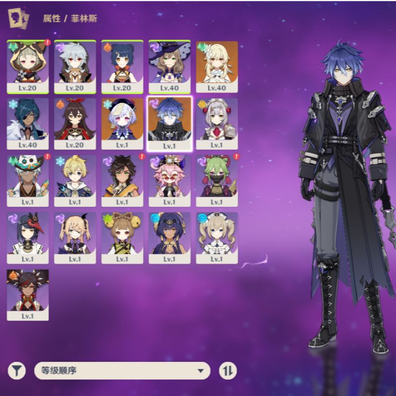 57级/男主/16个五星角色/0命杜林/希诺宁/芙宁娜/1命迪希雅/流浪者/纳西妲/