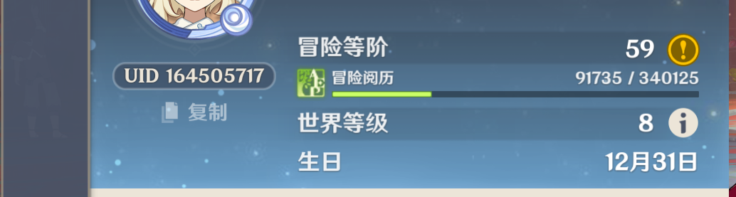 43黄 37角色黄 6武器黄 24五星角色 6五星武器 女主 60级