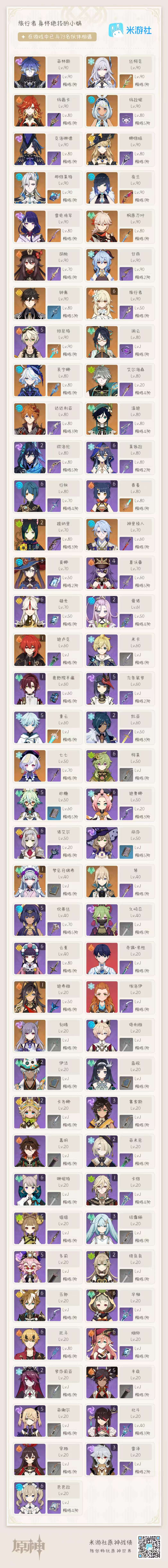 21仆人 21娜维娅 2命基尼奇,00少女,探索度低,主线到纳塔,卡池垫了70抽,还有10几抽