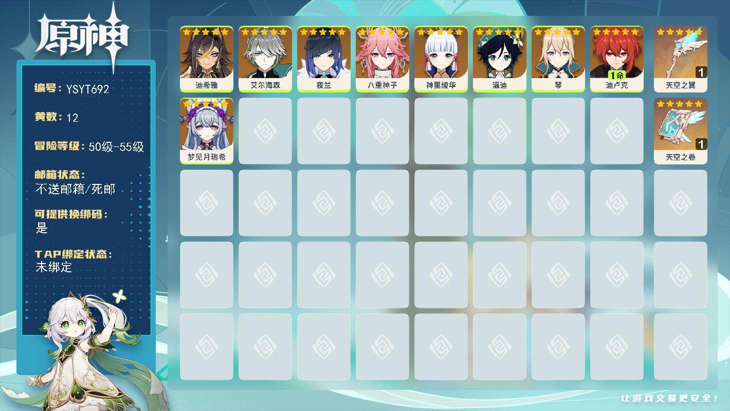 55级/12黄/女主/9个五星角色/2个五星武器/艾尔海森/八重神子