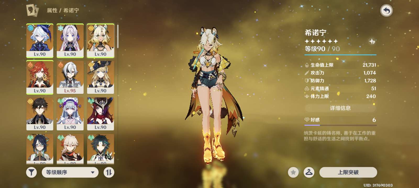 56级/17黄/女主/14个五星角色/1个五星武器/