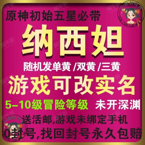 【草神】纳西妲+随机五星【游戏可改实名】5-10级冒险,深渊未开,可绑手机可改密
